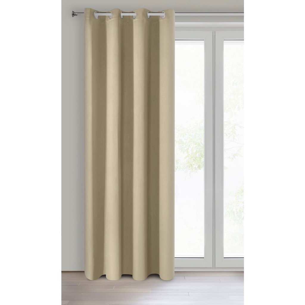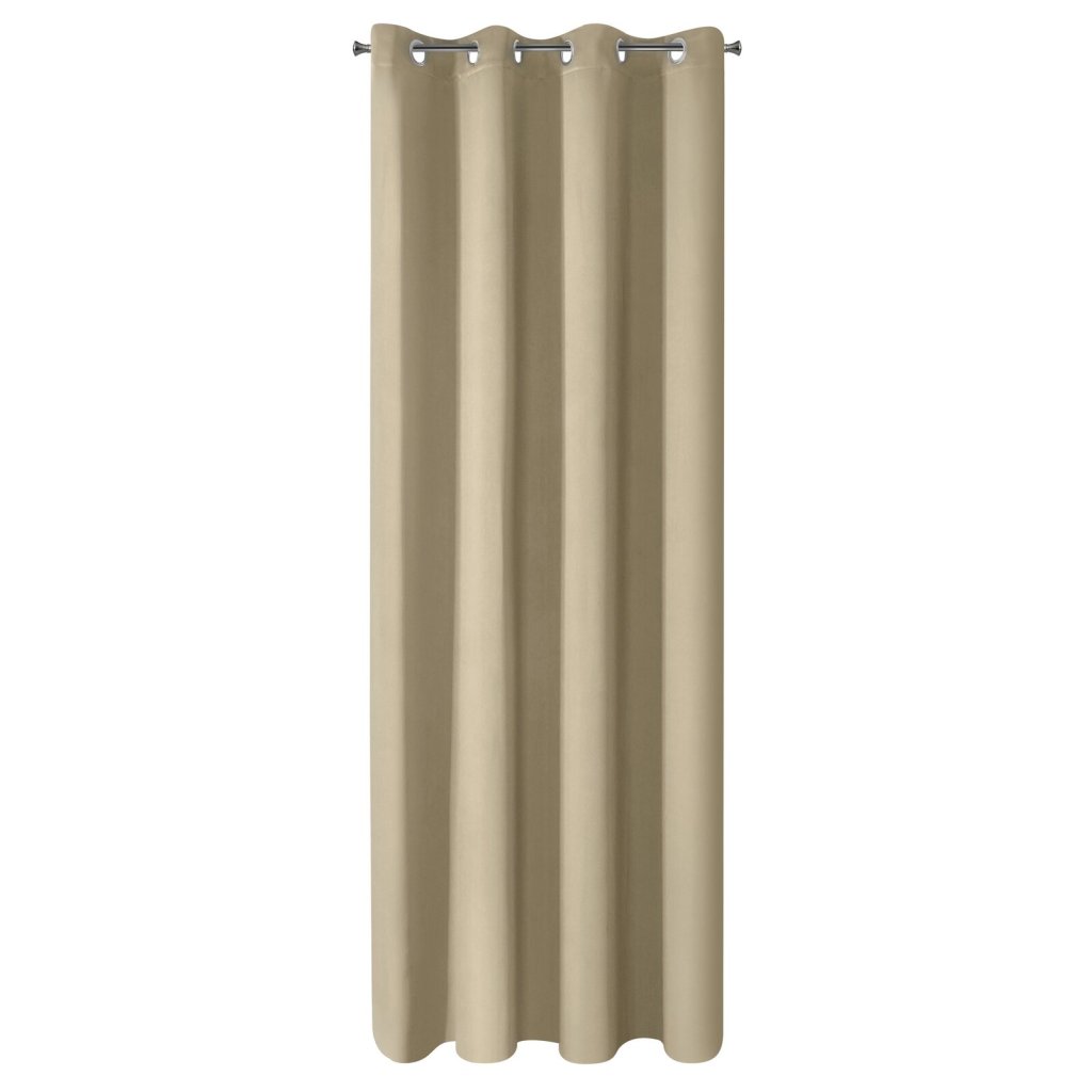 Zatemňovací závěs vyrobený z masivní zatemňovací látky. Výborná tepelná a zvuková izolace interiéru. Jednobarevný závěs s minimalistickým designem, Šířka: 135 cm, délka: 250 cm, barva: béžová, hmotnost: 210 GSM, složení: 100% polyester.Doplňkové parametry