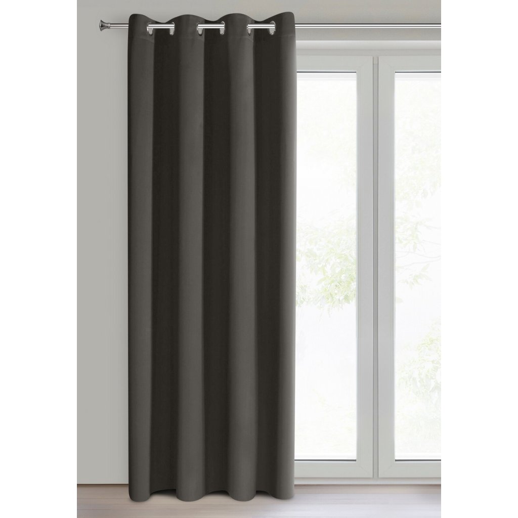 Zatemňovací závěs z rounové tkaniny. Vynikající tepelná a zvuková izolace interiéru. Jednobarevný závěs s minimalistickým designem. Šířka: 135 cm, Délka: 250 cm, Barva: grafitová, Hmotnost: 210 GSM, Složení: 100 % polyesterDoplňkové parametry