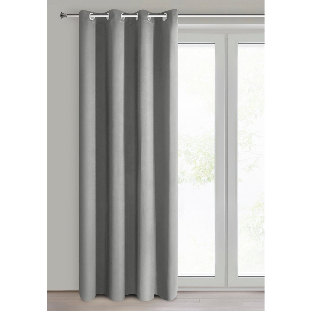 Zatemňovací závěs vyrobený z masivní zatemňovací látky. Výborná tepelná a zvuková izolace interiéru. Jednobarevný závěs s minimalistickým designem, Šířka: 135 cm, délka: 250 cm, barva: stříbrná, hmotnost: 210 GSM, složení: 100% polyester.Doplňkové parametry