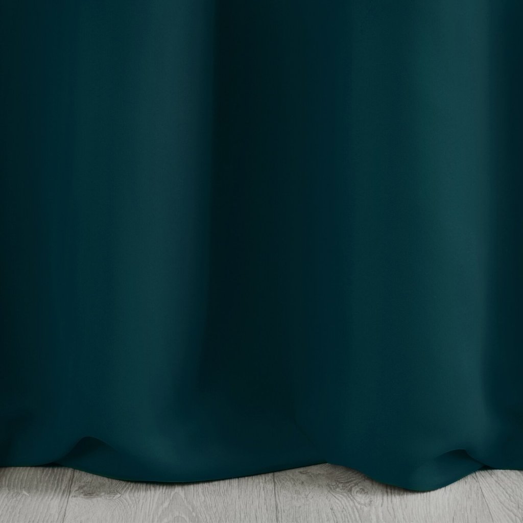 Zatemňovací závěs z rounové tkaniny. Vynikající tepelná a zvuková izolace interiéru. Jednobarevný závěs s minimalistickým designem. Šířka: 135 cm, Délka: 250 cm, Barva: tmavá tyrkysová, Hmotnost: 210 GSM, Složení: 100 % polyesterDoplňkové parametry