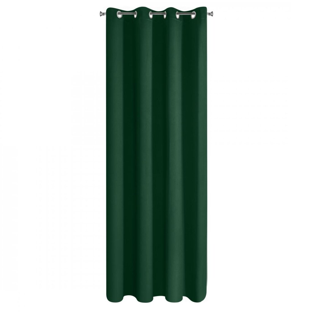 Zatemňovací závěs z rounové tkaniny. Vynikající tepelná a zvuková izolace interiéru. Jednobarevný závěs s minimalistickým designem. Šířka: 135 cm, délka: 250 cm, barva: tmavě zelená, hmotnost: 210 GSM, složení: 100 % polyesterDoplňkové parametry