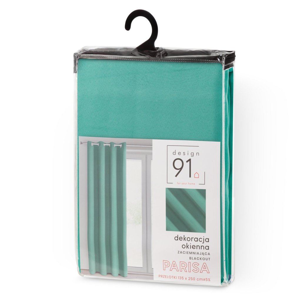 Zatemňovací závěs z rounové tkaniny. Vynikající tepelná a zvuková izolace interiéru. Jednobarevný závěs s minimalistickým designem. Šířka: 135 cm, délka: 250 cm, barva: mentolová, hmotnost: 210 GSM, složení: 100 % polyesterDoplňkové parametry