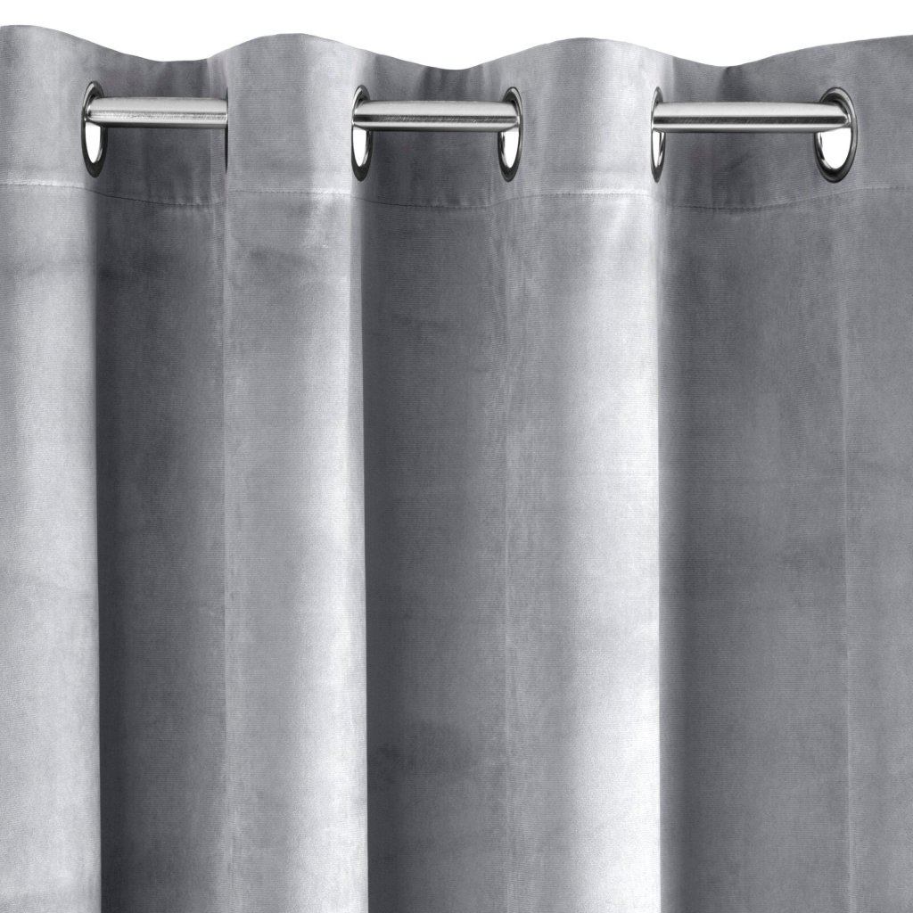 Měkký závěs z jednobarevného sametu s charakteristickým sametovým leskem. Měkká tkanina poskytuje interiéru vysoký stupeň stínění. Šířka: 140 cm, délka: 250 cm, barva: světle stříbrná, hmotnost: 215 GSM, složení: 100 % polyesterDoplňkové parametry