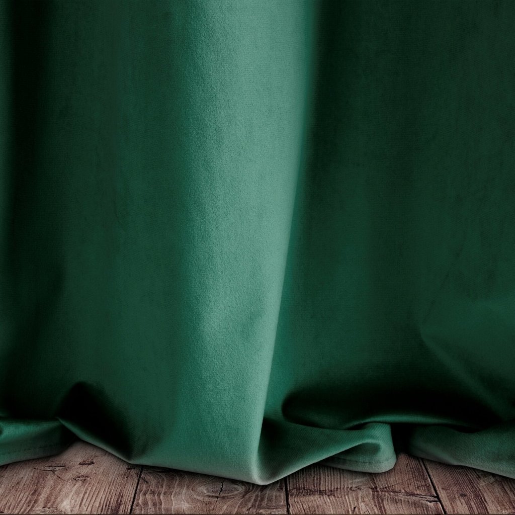 Měkký závěs z jednobarevného sametu s charakteristickým sametovým leskem. Měkká tkanina poskytuje vysoký stupeň vnitřního stínění. Šířka: 140 cm, délka: 250 cm, barva: tmavě zelená, hmotnost: 215 GSM, složení: 100 % polyesterDoplňkové parametry