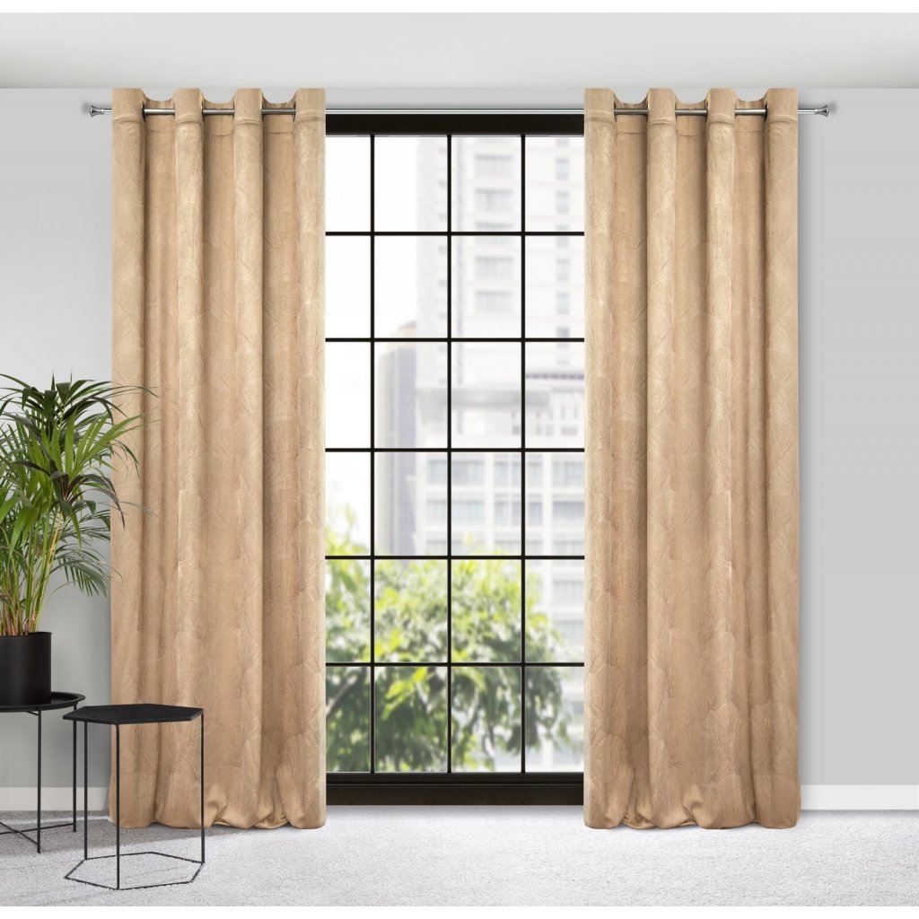 Sametový závěs z kolekce Pierre Cardin se třpytivým potiskem šířka: 140 cm, délka: 250 cm, barva: béžová, hmotnost: 200 GSM, složení: 100 % polyesterDoplňkové parametry