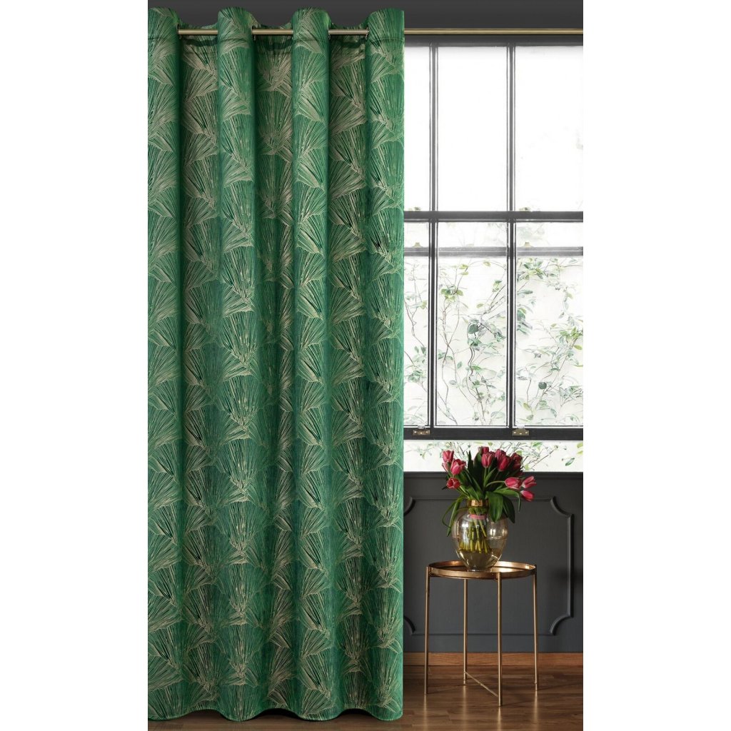 ZATEMŇOVACÍ ZÁVĚS NA KROUŽCÍCH PIERRE CARDIN GOYA 140X250 CM ZELENÁ