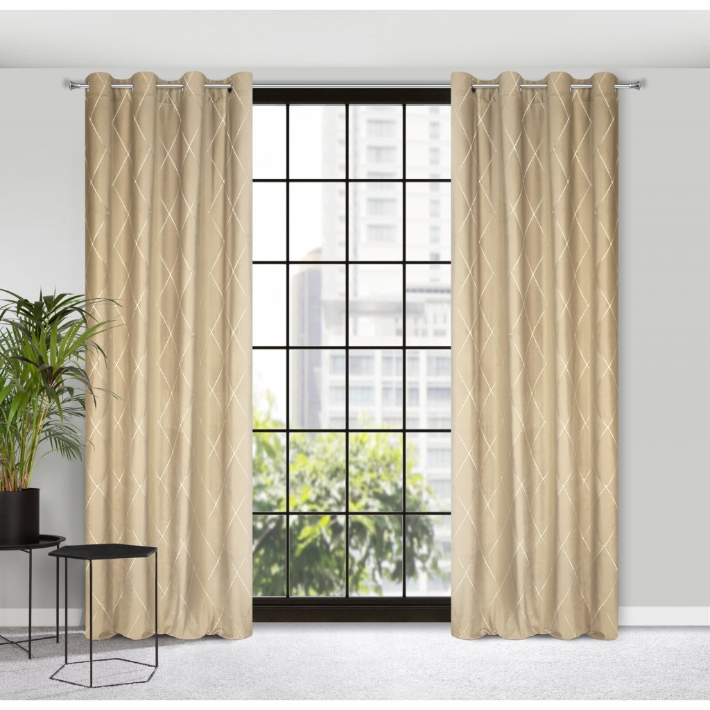 ZATEMŇOVACÍ ZÁVĚS NA KROUŽCÍCH PIERRE CARDIN MARGO 140X250 CM BÉŽOVÁ
