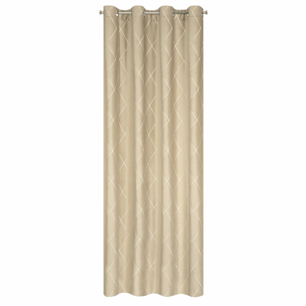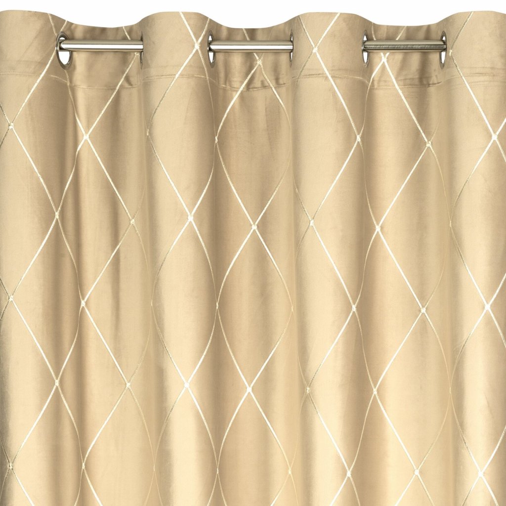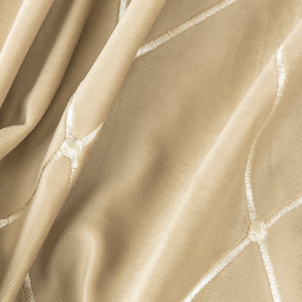 Sametový závěs z kolekce Pierre Cardin zdobený výšivkou. Šířka: 140 cm, délka: 250 cm, barva: béžová, hmotnost: 258 GSM, složení: 100 % polyesterDoplňkové parametry