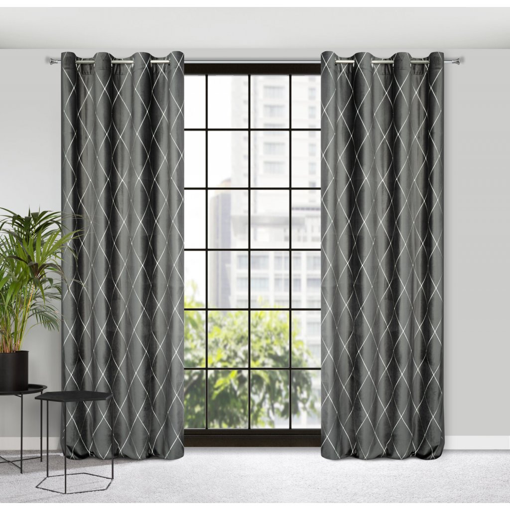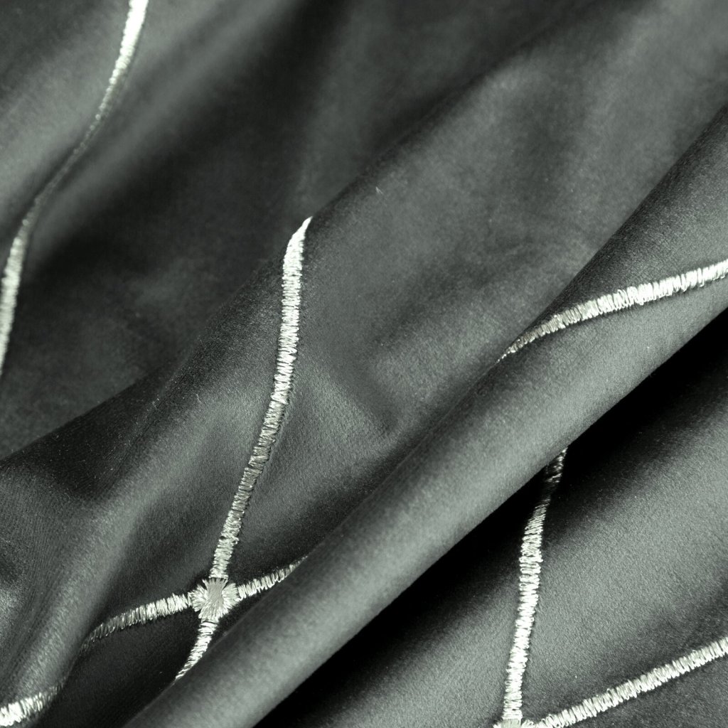 Sametový závěs z kolekce Pierre Cardin zdobený výšivkou. Šířka: 140 cm, délka: 250 cm, barva: světle stříbrná, hmotnost: 258 GSM, složení: 100 % polyesterDoplňkové parametry