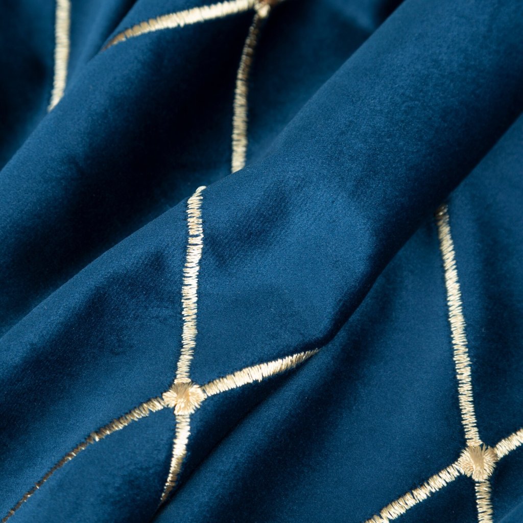 Sametový závěs z kolekce Pierre Cardin zdobený výšivkou. Šířka: 140 cm, délka: 250 cm, barva: tmavě modrá, hmotnost: 258 GSM, složení: 100 % polyesterDoplňkové parametry
