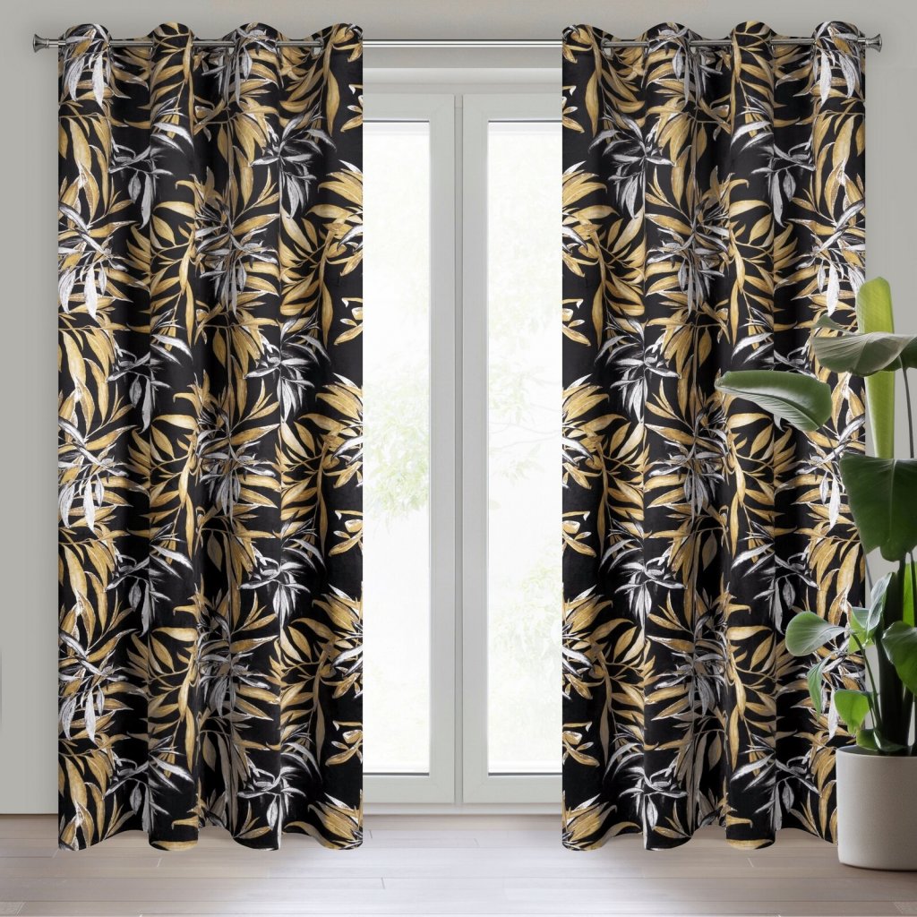 Sametový závěs z kolekce Pierre Cardin zdobený potiskem. Šířka: 140 cm, Délka: 250 cm, Barva: hnědá, Hmotnost: 200 GSM, složení: 100 % polyesterDoplňkové parametry