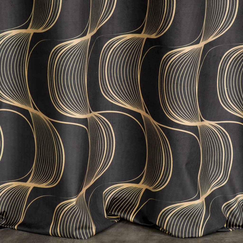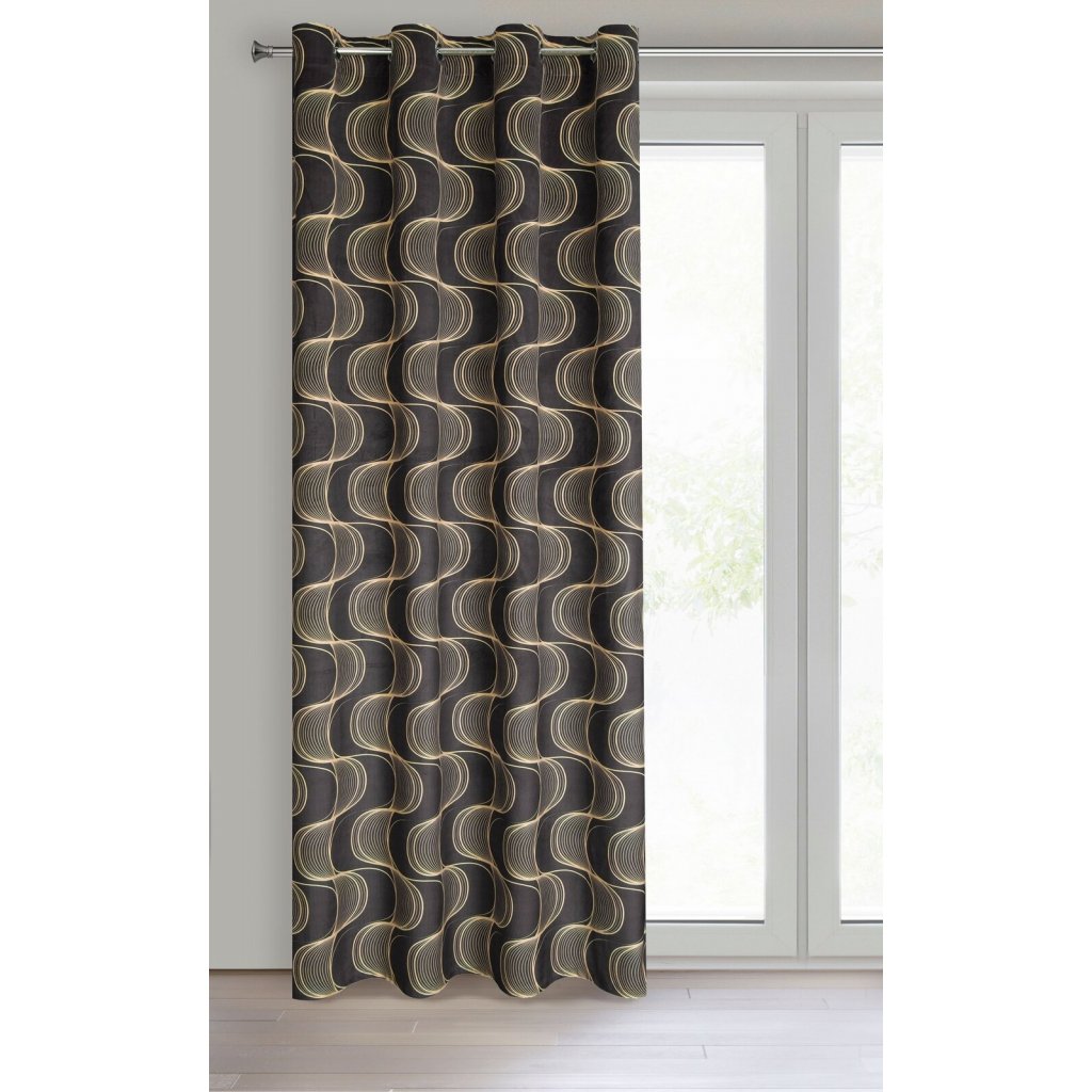 Sametový závěs s potiskem Šířka: 140 cm, Délka: 250 cm, Barva: černá/zlatá, Hmotnost: 200 GSM, složení: 100 % polyesterDoplňkové parametry