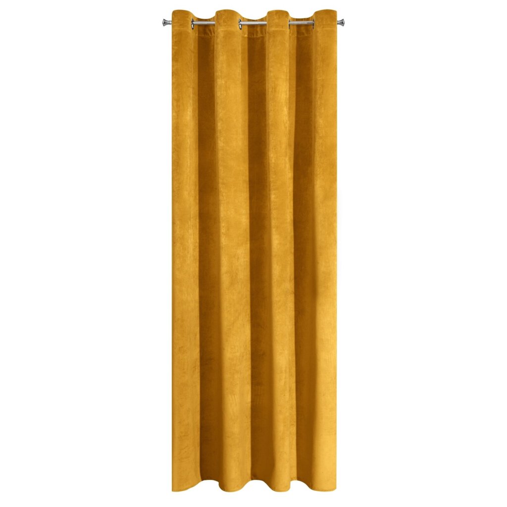 Sametový závěs na 10 smyčkách šířka: 140 cm, délka: 250 cm, barva: hořčicová, hmotnost: 290 GSM, složení: 100 % polyesterDoplňkové parametry