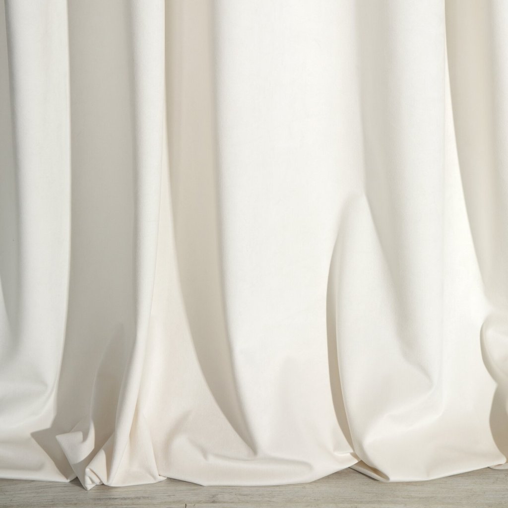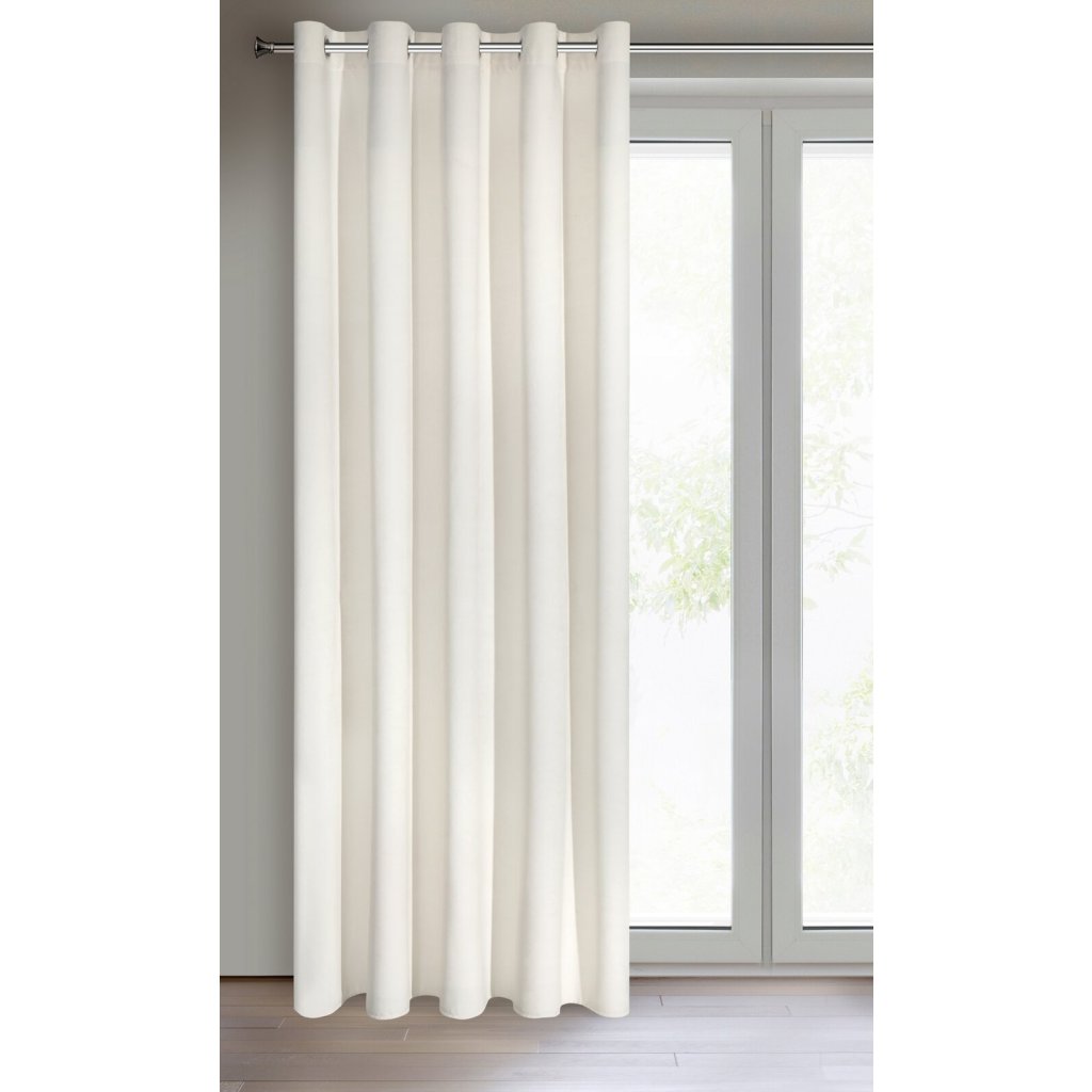 Sametový závěs světlé krémové barvě, šířka: 140 cm, délka: 250 cm, barva: krémová, hmotnost: 290 GSM, složení: 100% polyester.Doplňkové parametry