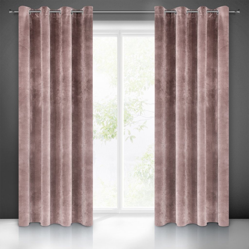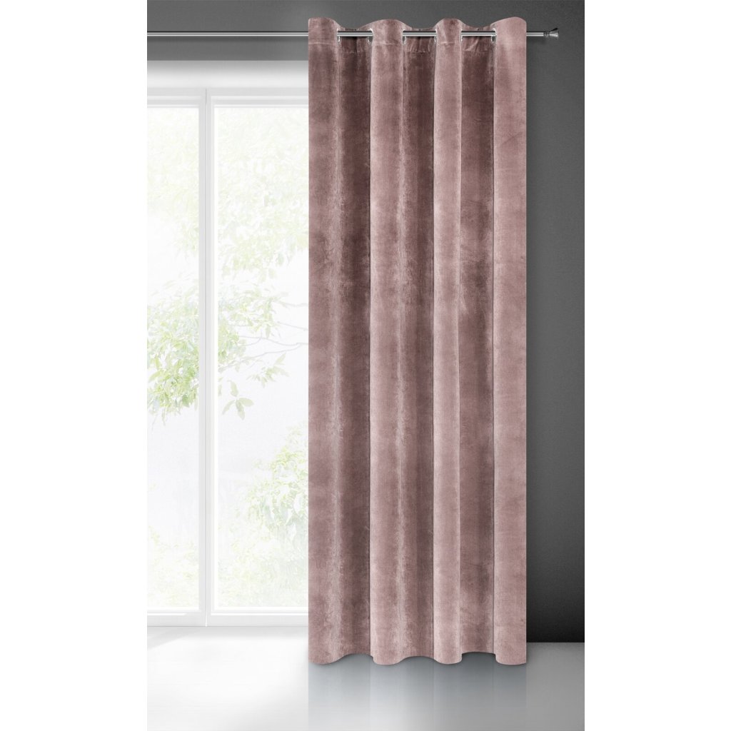 Sametový závěs na 10 smyčkách šířka: 140 cm, délka: 250 cm, barva: pudrově růžová, hmotnost: 290 GSM, složení: 100 % polyesterDoplňkové parametry