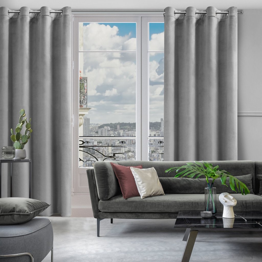 Jednobarevný sametový závěs šířka: 140 cm, délka: 250 cm, barva: šedá, hmotnost: 200 GSM, složení: 100 % polyesterDoplňkové parametry