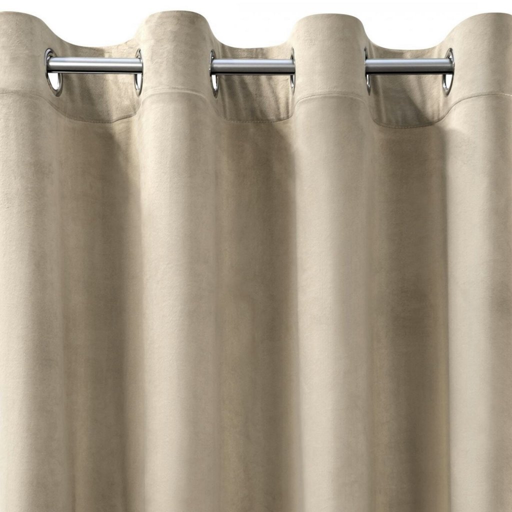 Jemný, sametový závěs s matným povrchem. Hrubá tkanina se středními vlastnostmi zatemnění dodává interiéru elegantní charakter. Šířka: 140 cm, délka: 250 cm, barva: světle béžová, hmotnost: 200 GSM, složení: 100% polyester.Doplňkové parametry