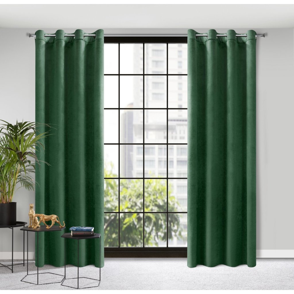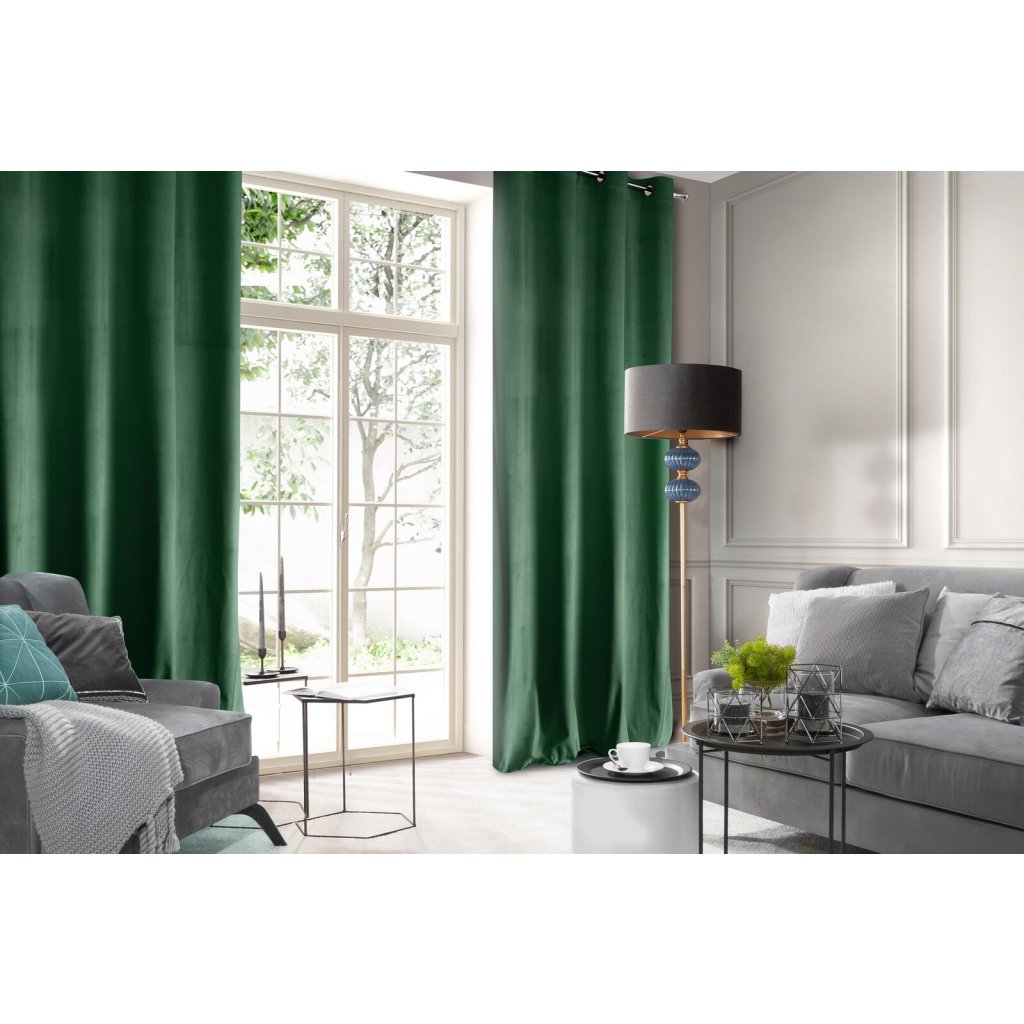 Jednobarevný sametový závěs šířka: 140 cm, délka: 250 cm, barva: zelená, hmotnost: 200 GSM, složení: 100 % polyesterDoplňkové parametry