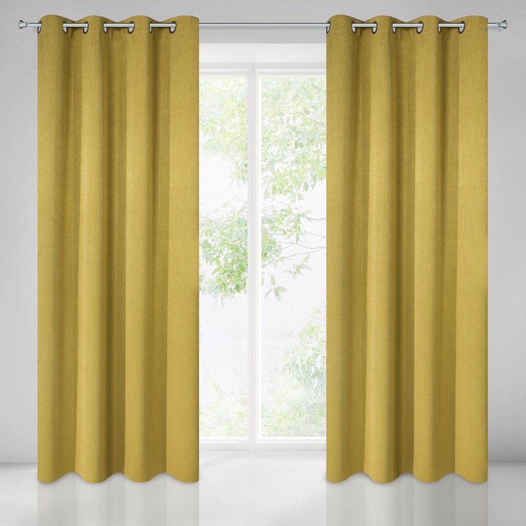 Jednobarevný strukturovaný zatemňovací závěs šířka: 140 cm, délka: 250 cm, barva: hořčicová, hmotnost: 250 GSM, složení: 100 % polyesterDoplňkové parametry