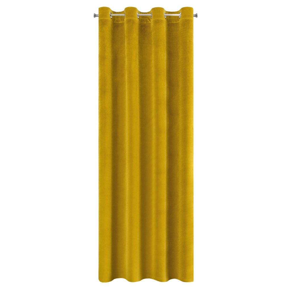 Lehký sametový závěs z měkké tkaniny s jemným leskem, který je charakteristický pro samety. Jemně vrstvené. Šířka: 140 cm, délka: 250 cm, barva: hořčicová, hmotnost: 190 GSM, složení: 100 % polyesterDoplňkové parametry