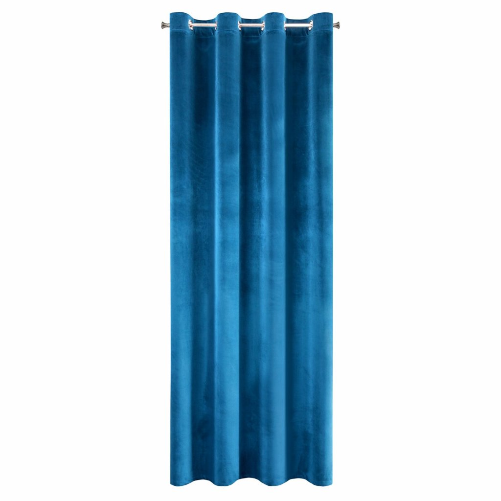 Lehký sametový závěs z měkké tkaniny s jemným leskem, který je charakteristický pro samety. Jemně vrstvené. Šířka: 140 cm, Délka: 250 cm, Barva: modrá, Hmotnost: 190 GSM, Složení: 100 % polyesterDoplňkové parametry