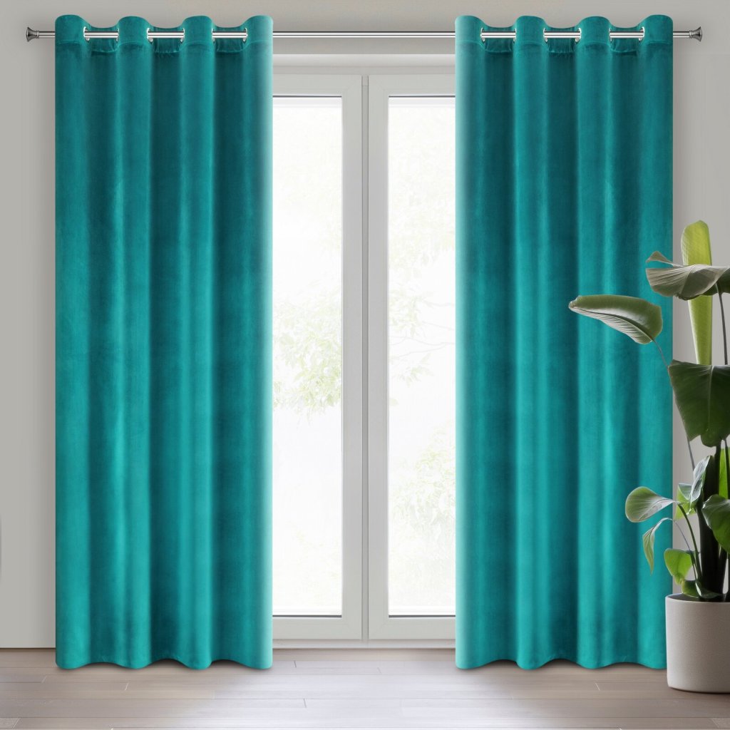 Lehký, sametový závěs z měkké látky s jemným leskem, charakteristickým pro samety. Jemně sedí. Žehlit naruby, šířka: 140 cm, délka: 250 cm, barva: tyrkysová, hmotnost: 190 GSM, složení: 100% polyester.Doplňkové parametry