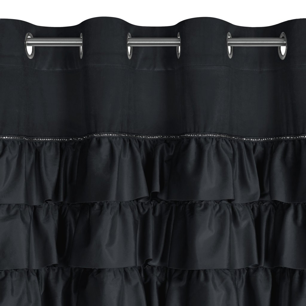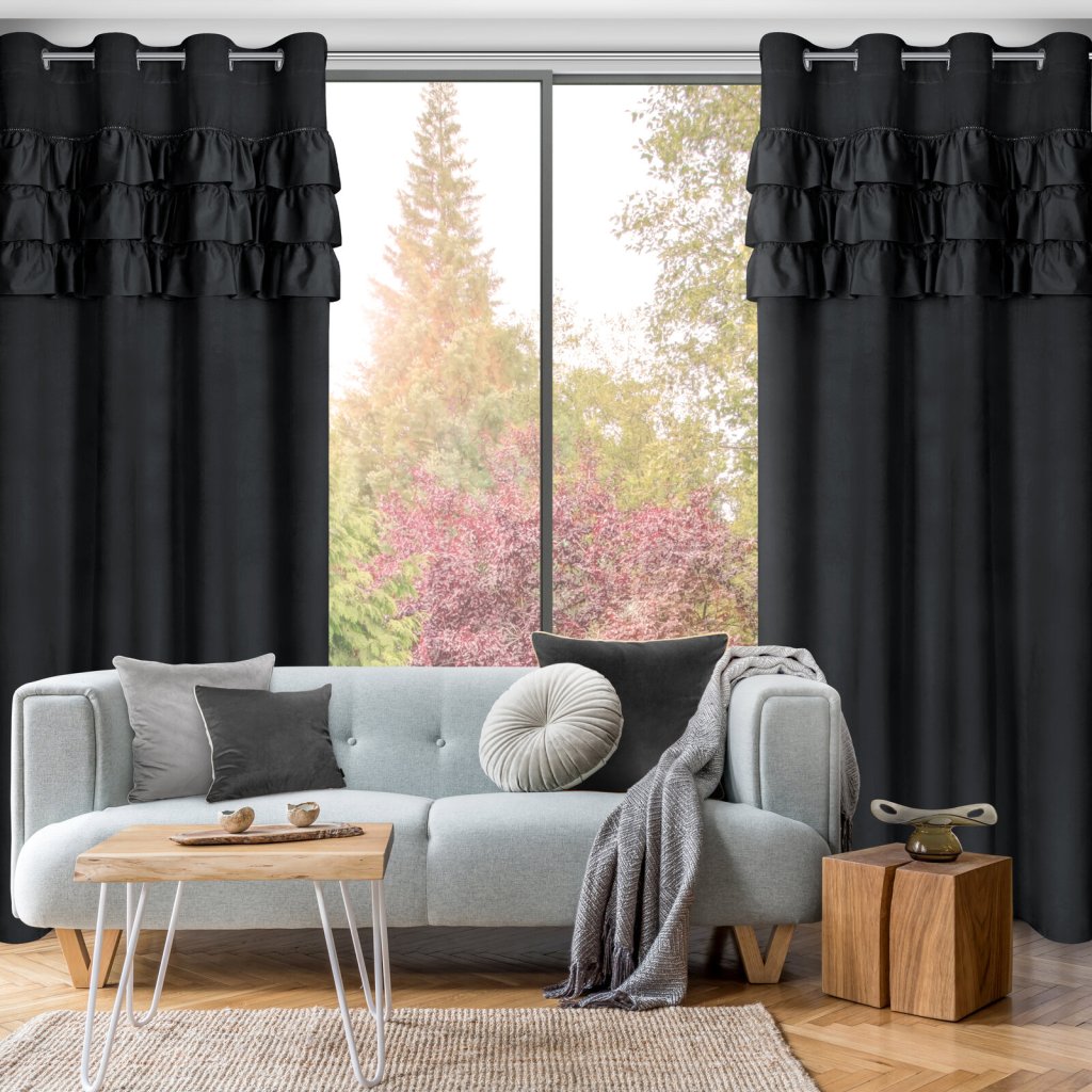 Vneste do svého interiéru luxus a eleganci s hotovým sametovým závěsem SAMI. Sametová látka je mimořádně měkká a příjemná na dotek a poskytuje střední stupeň zatemnění. Vrchní část závěsu zdobí volány, které mu dodávají lehký a romantický charakter. Šířka: 140 cm, délka: 250 cm, barva: černá, hmotnost: 200 GSM, složení: 100% polyester.Doplňkové parametry