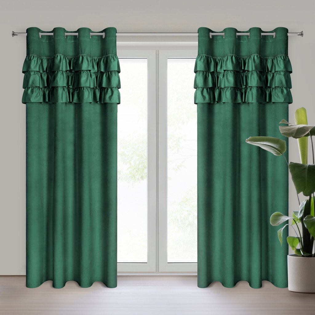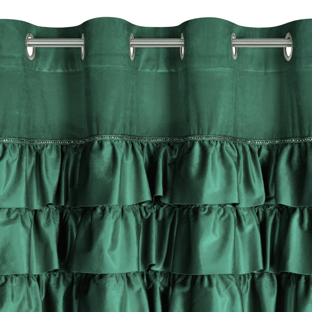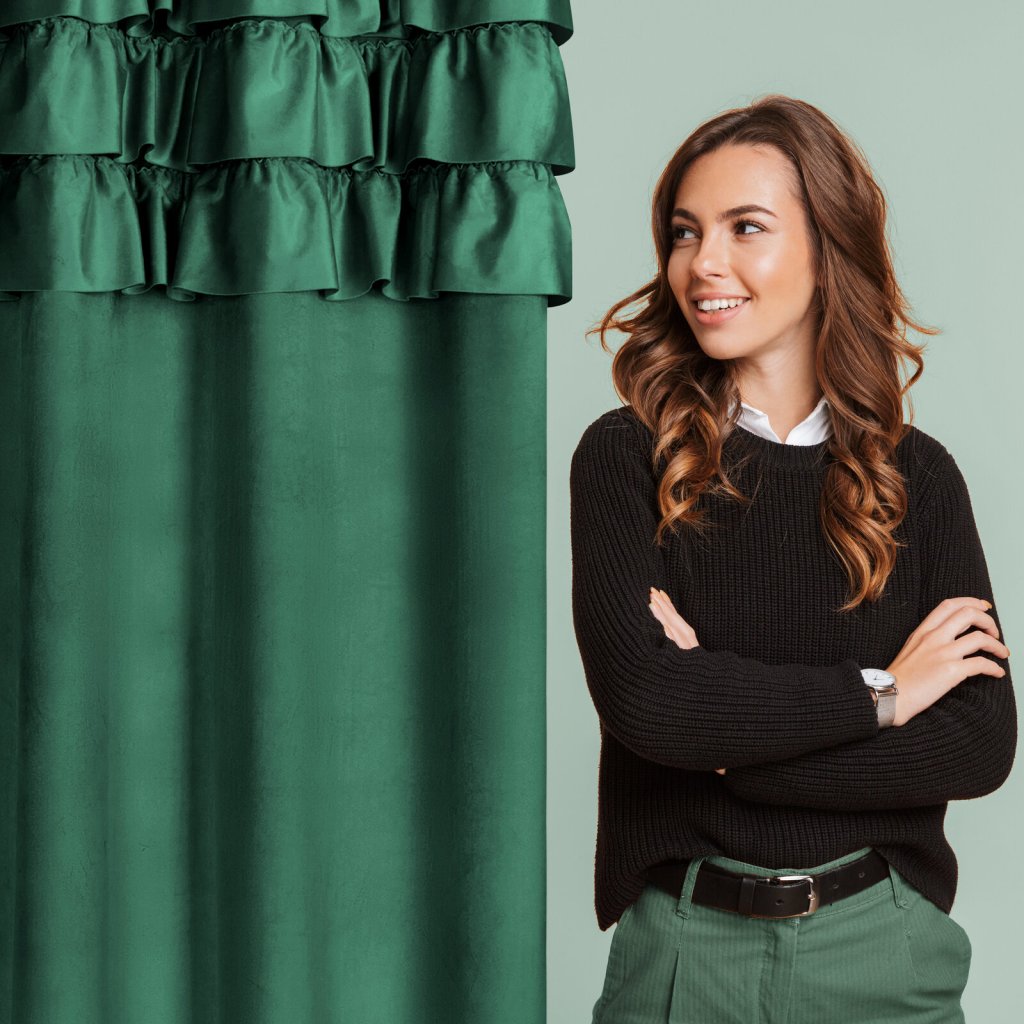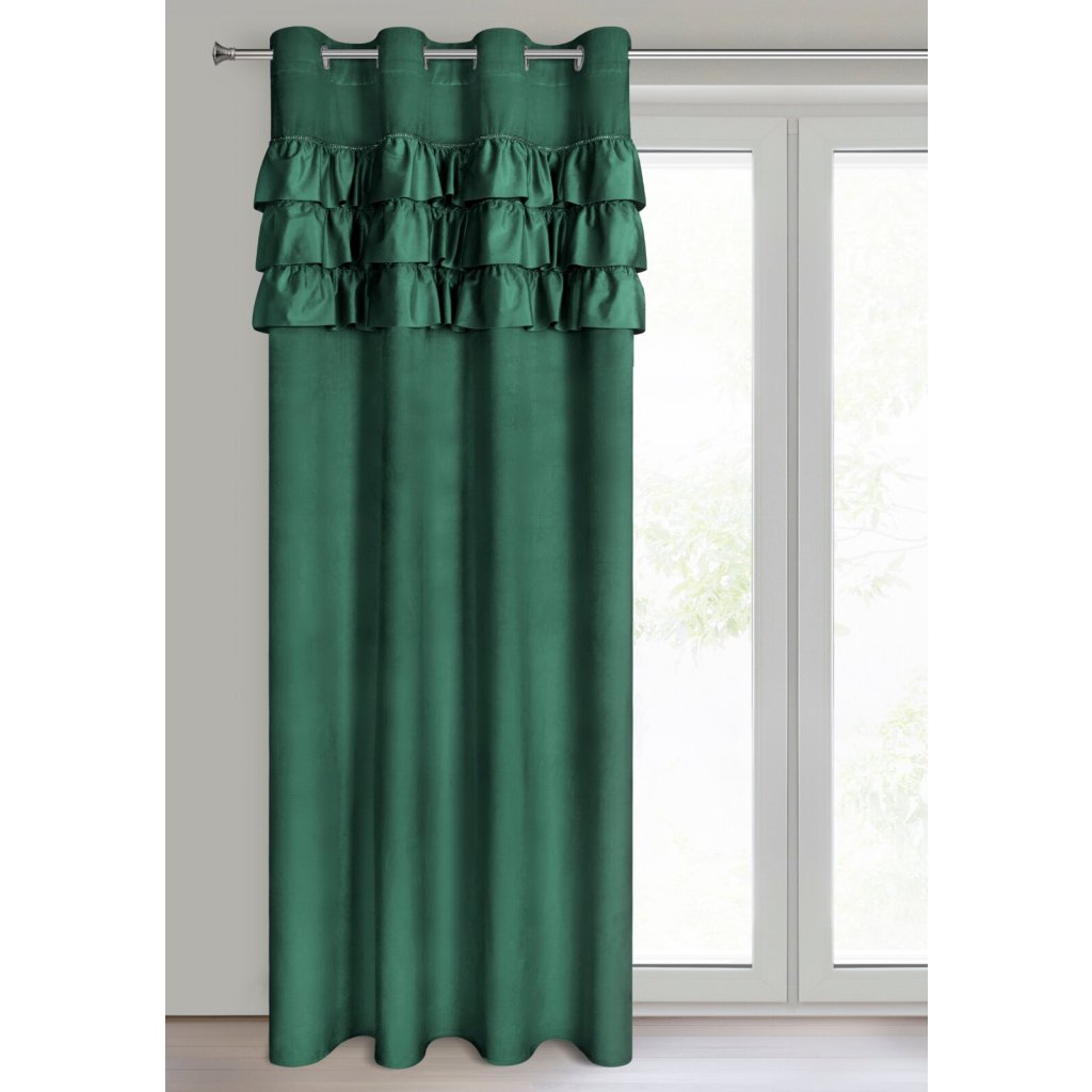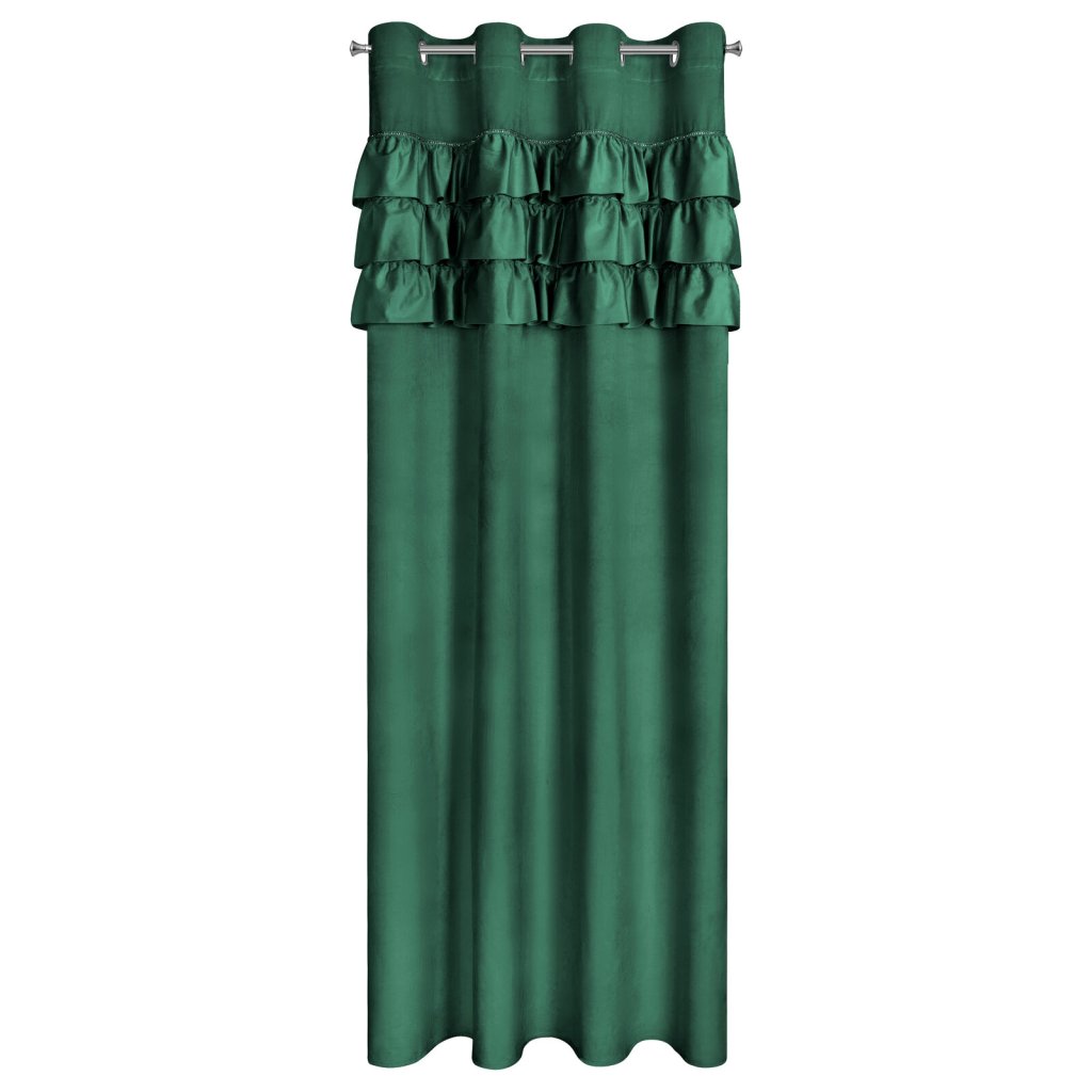 Vneste do svého interiéru luxus a eleganci s hotovým sametovým závěsem SAMI. Sametová látka je mimořádně měkká a příjemná na dotek a poskytuje střední stupeň zatemnění. Vrchní část závěsu zdobí volány, které mu dodávají lehký a romantický charakter. Šířka: 140 cm, délka: 250 cm, barva: tmavě zelená, hmotnost: 200 GSM, složení: 100% polyester.Doplňkové parametry