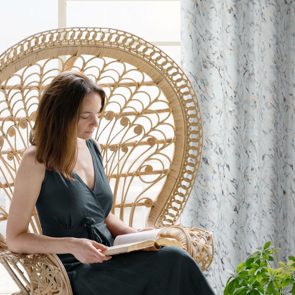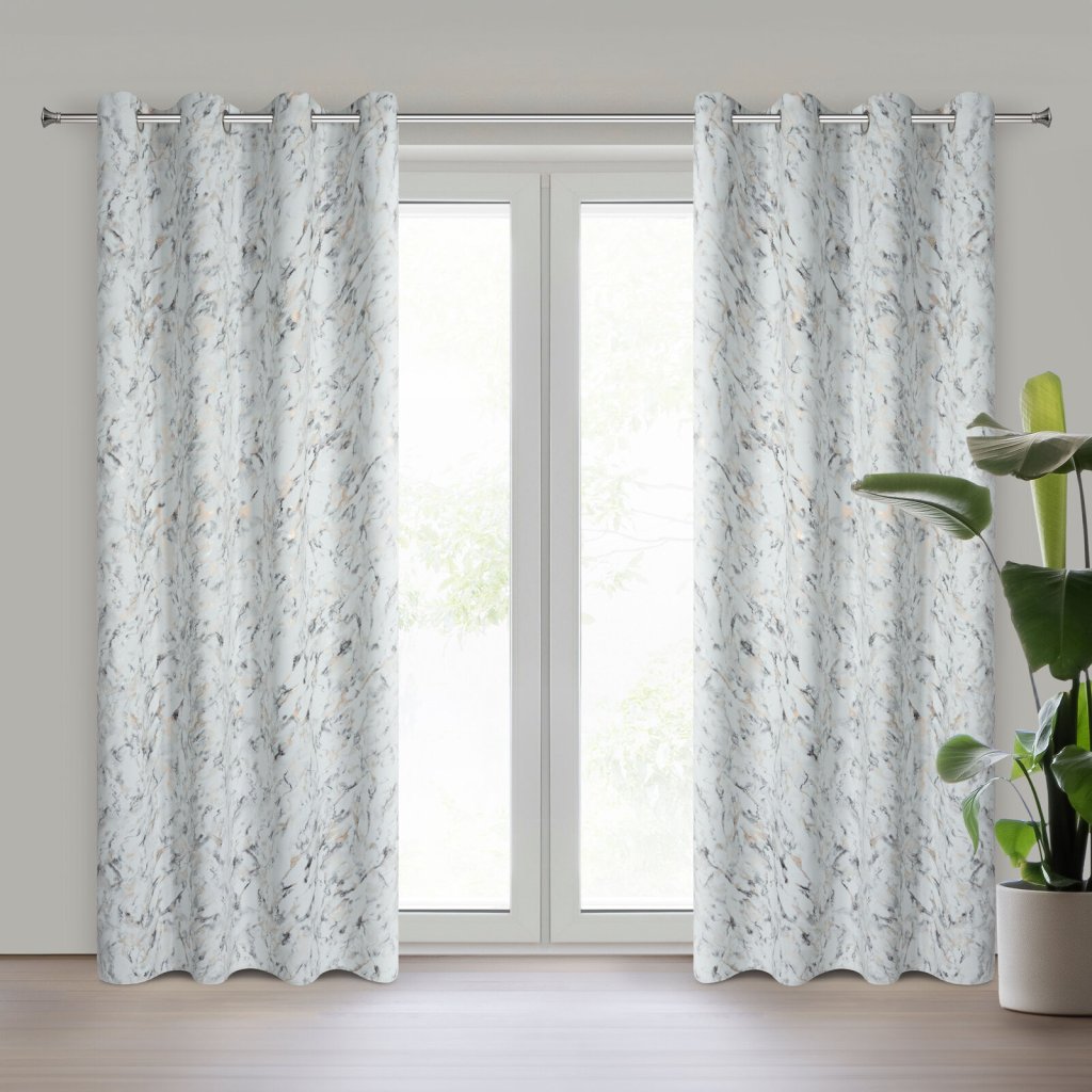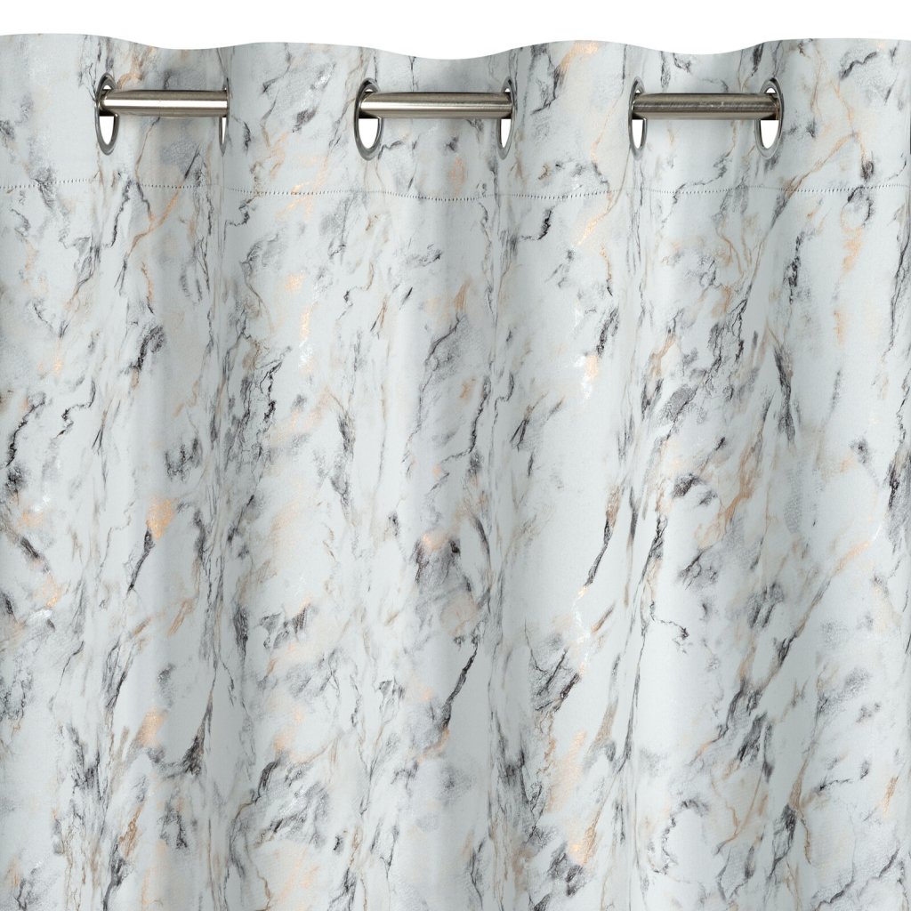 Dodejte svému interiéru luxusní nádech se zatemňovacím závěsem SANCY z měkké, na dotek příjemné látky. Závěs zdobí jemný lesklý potisk inspirovaný strukturou mramoru, který mu dodává elegantní, moderní vzhled. Šířka: 140 cm, délka: 250 cm, barva: vícebarevná, hmotnost: 210 GSM, složení: 100% polyester.Doplňkové parametry