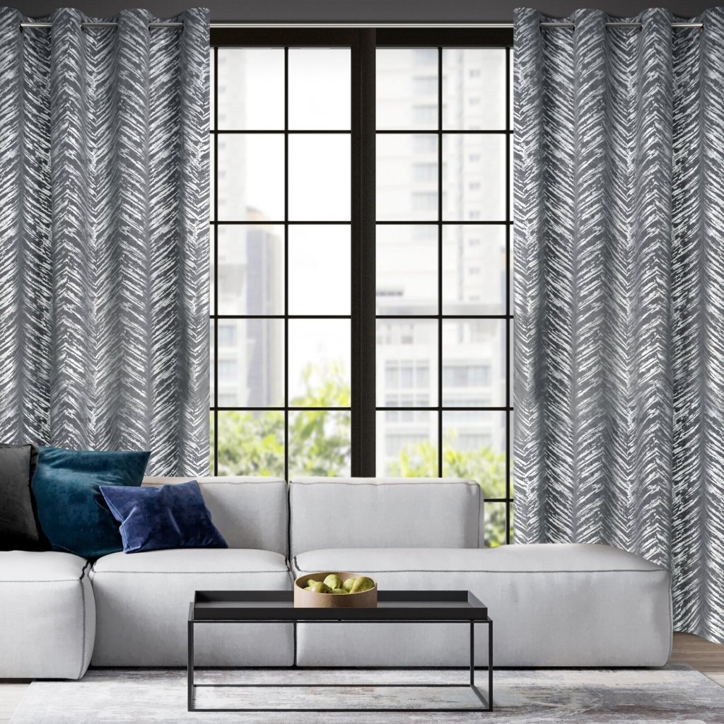 Sametový závěs se stříbrným potiskem šířka: 140 cm, délka: 250 cm, barva: stříbrná/stříbrná, hmotnost: 200 GSM, složení: 100 % polyesterDoplňkové parametry