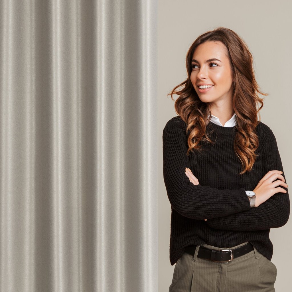 Zatemňovací závěs s lesklou nití, šířka: 140 cm, délka: 250 cm, barva: tmavě béžová, gramáž: 300 GSM, složení: 100% polyester.Doplňkové parametry