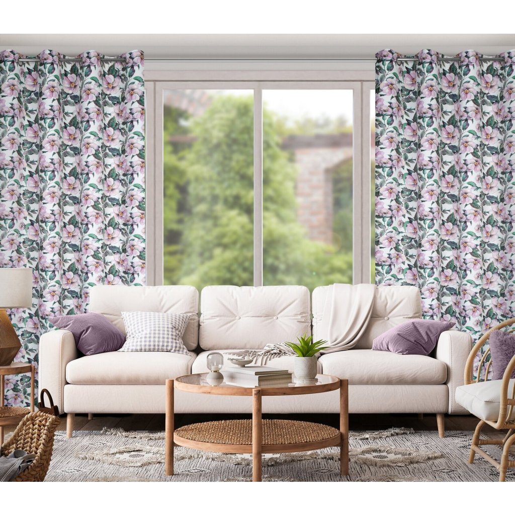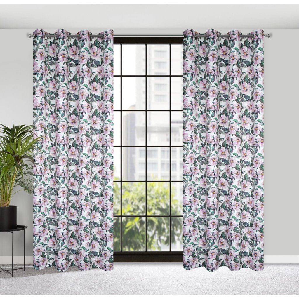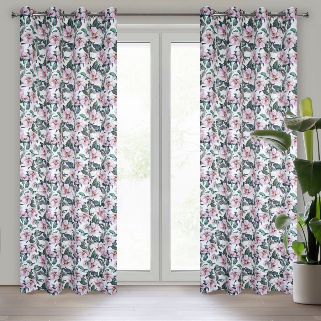 Zatemňovací závěs s potiskem květin, šířka: 140 cm, délka: 250 cm, barva: vícebarevná, Hmotnost: 210 GSM, složení: 100% polyester.Doplňkové parametry