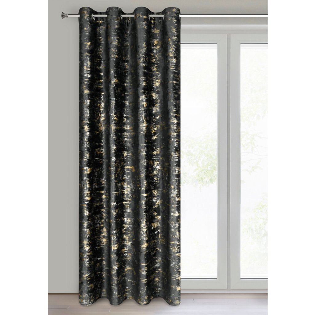Sametový závěs s lesklým potiskem, šířka: 140 cm, délka: 250 cm, barva: černá, zlatá, stříbrná, hmotnost: 200 GSM, materiál: 100% polyester.Doplňkové parametry