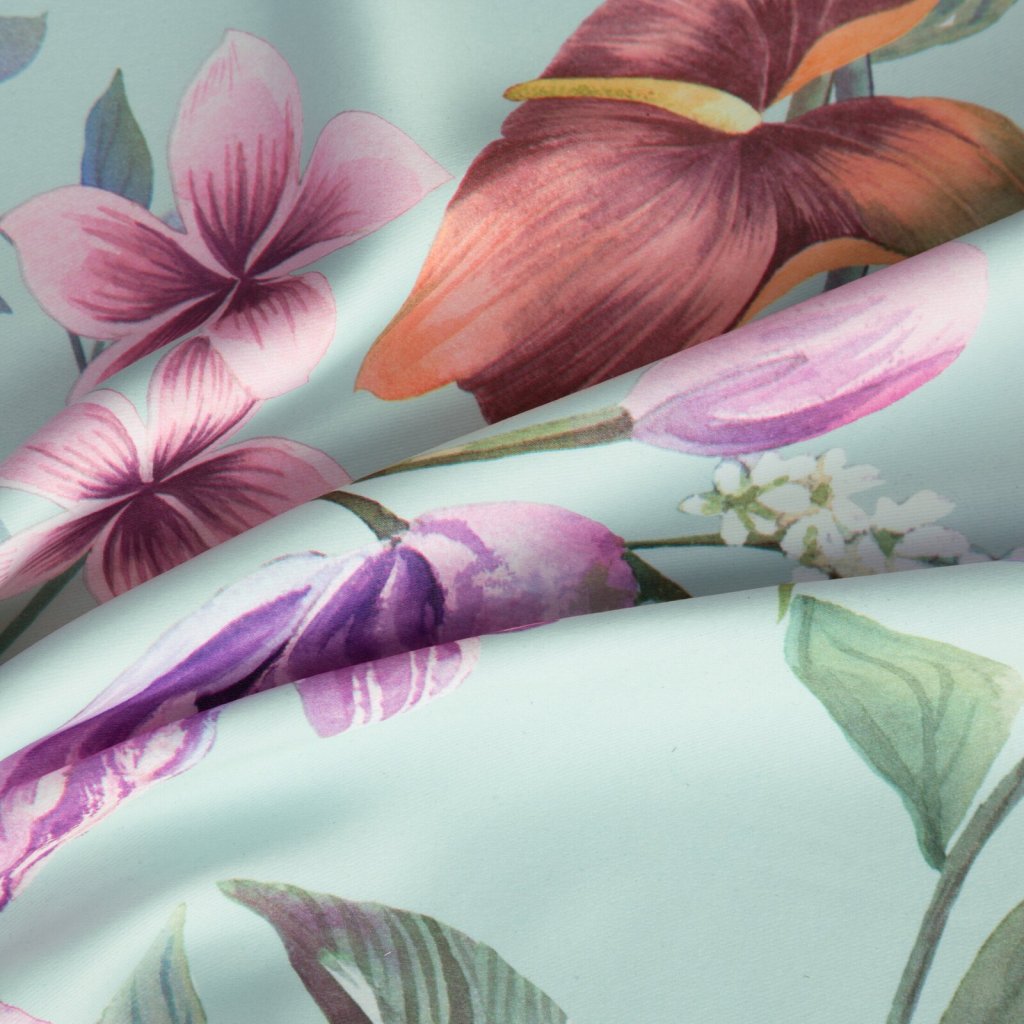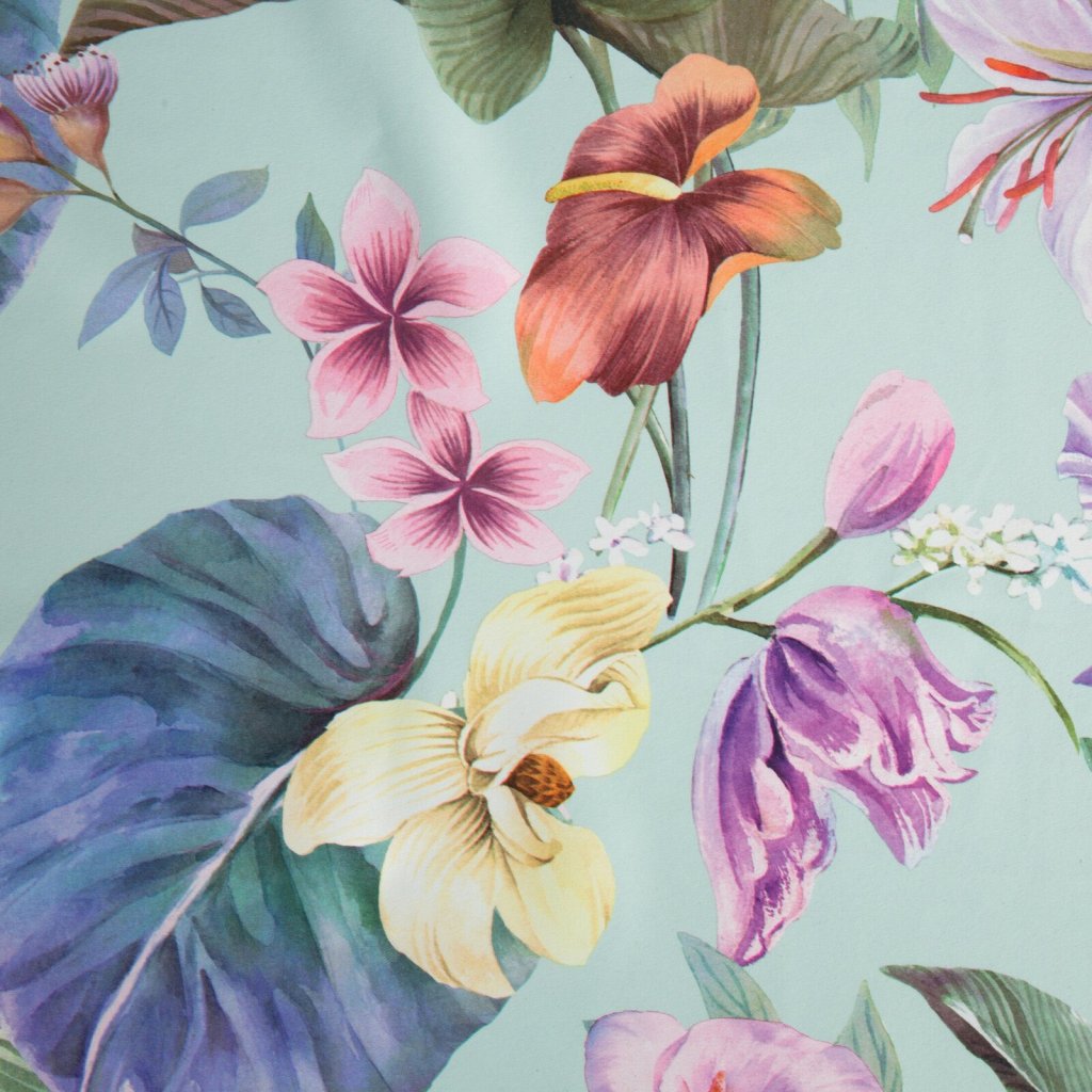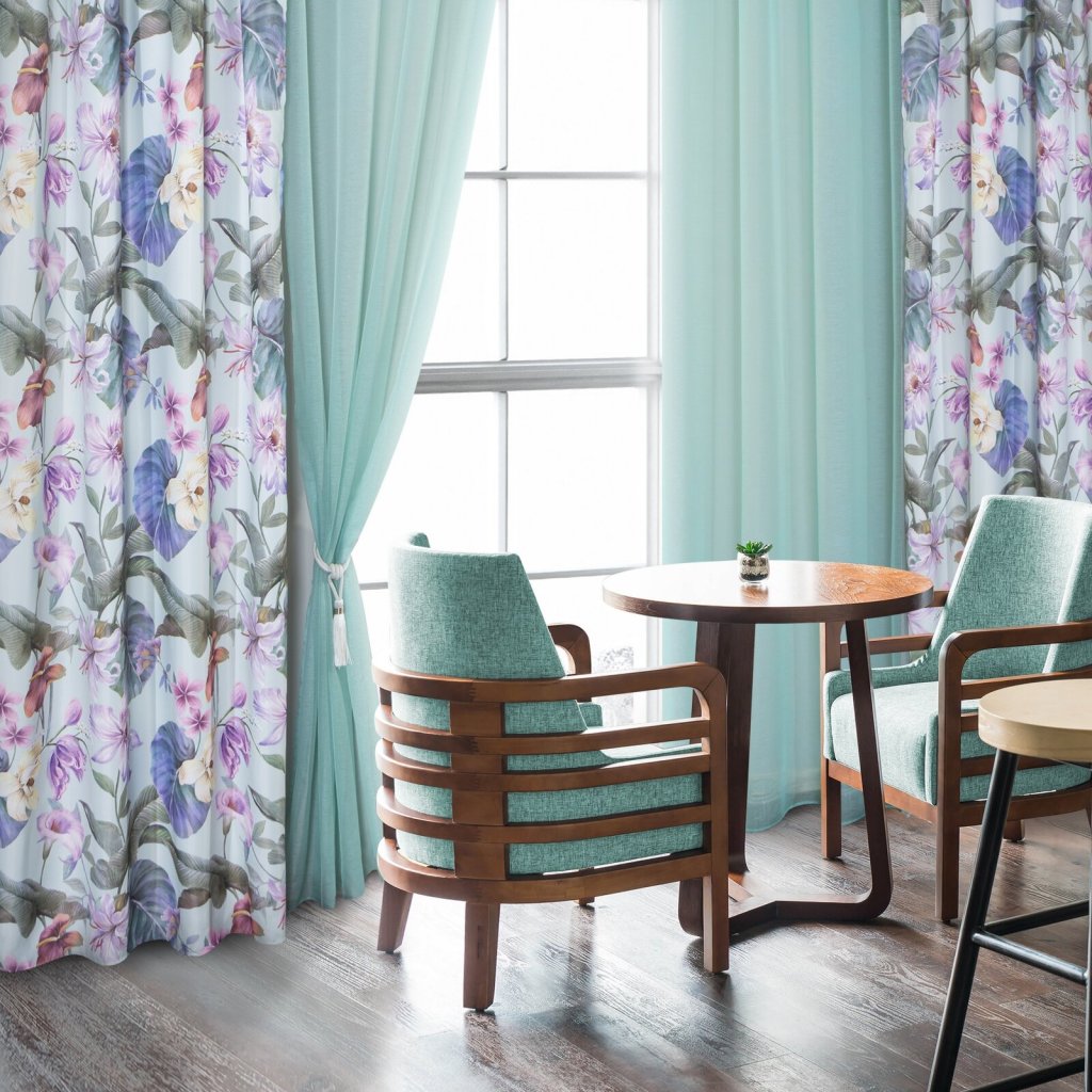 Závěs z jemné tkaniny zdobený potiskem s motivem exotických listů a květin. Vysoká úroveň stínění. Šířka: 140 cm, délka: 270 cm, barva: vícebarevná, hmotnost: 210 GSM, složení: 100 % polyesterDoplňkové parametry
