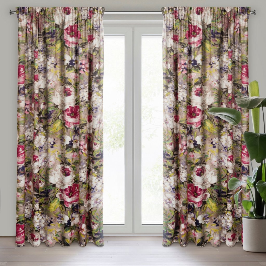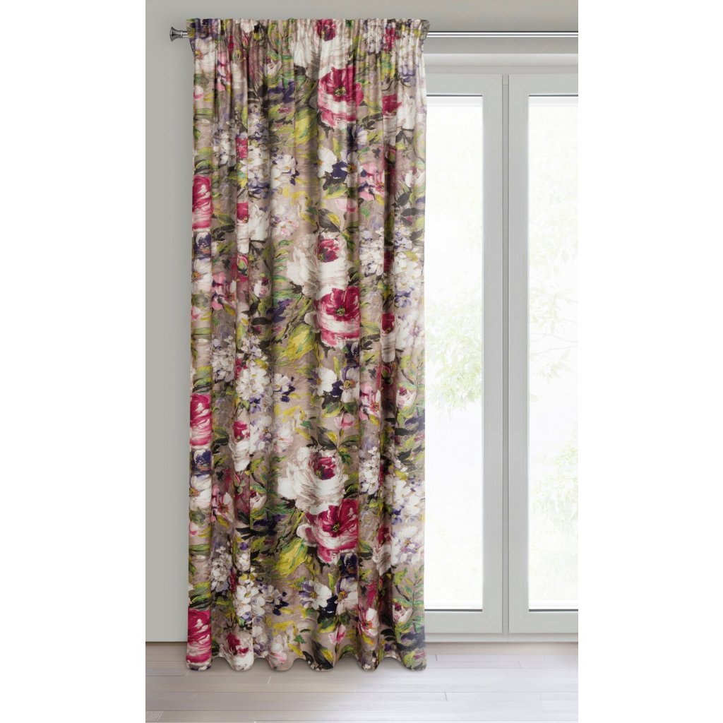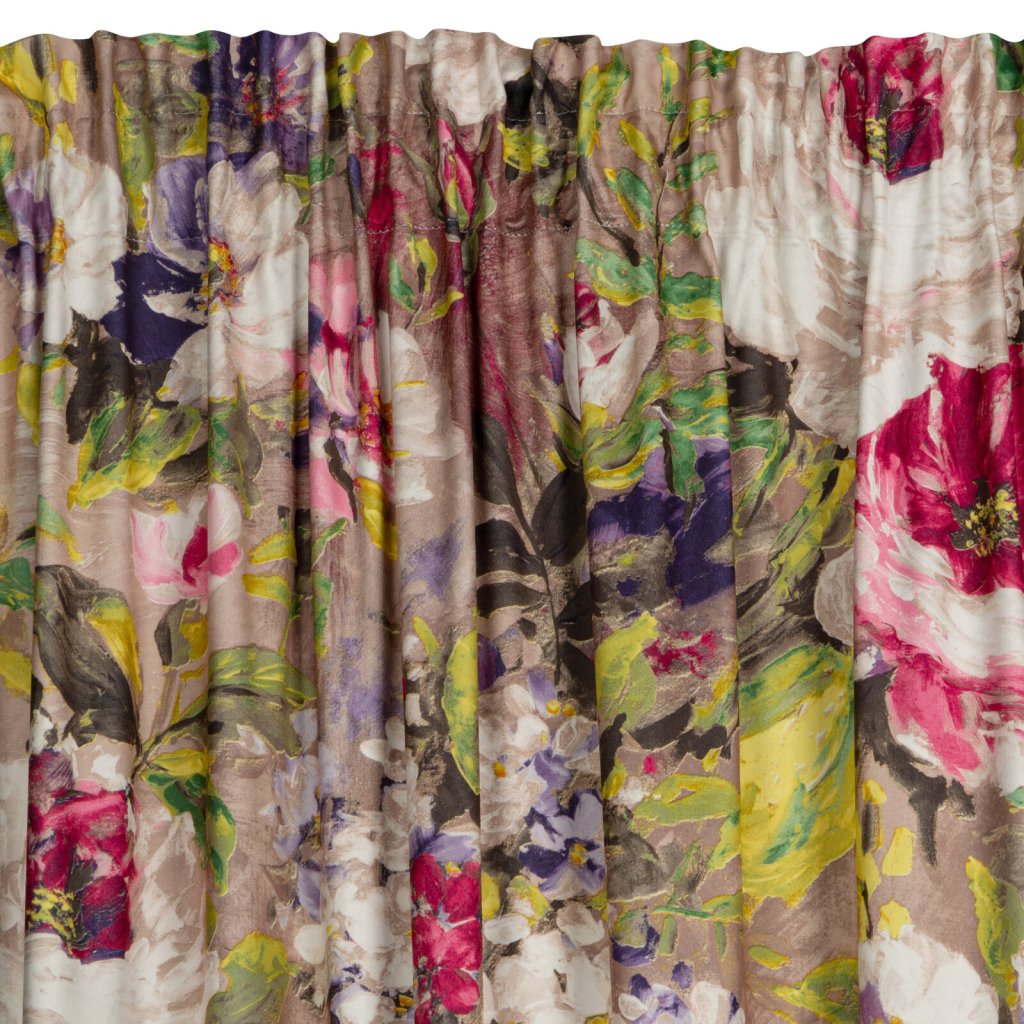 Sametový, zatemňující závěs s bohatým květinovým potiskem. Šířka: 140 cm, Délka: 270 cm, Barva: vícebarevná, Hmotnost: 200 GSM, Složení: 100 % polyesterDoplňkové parametry