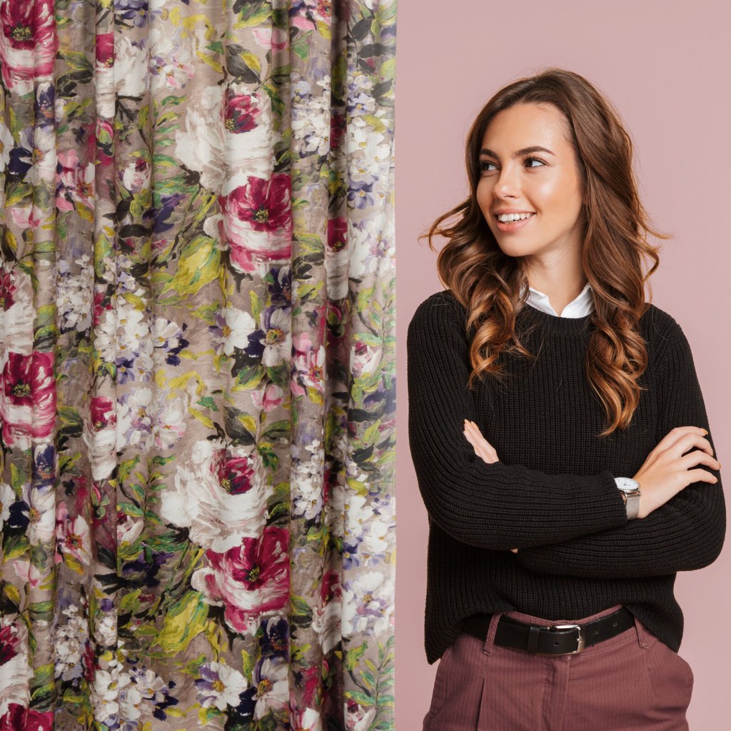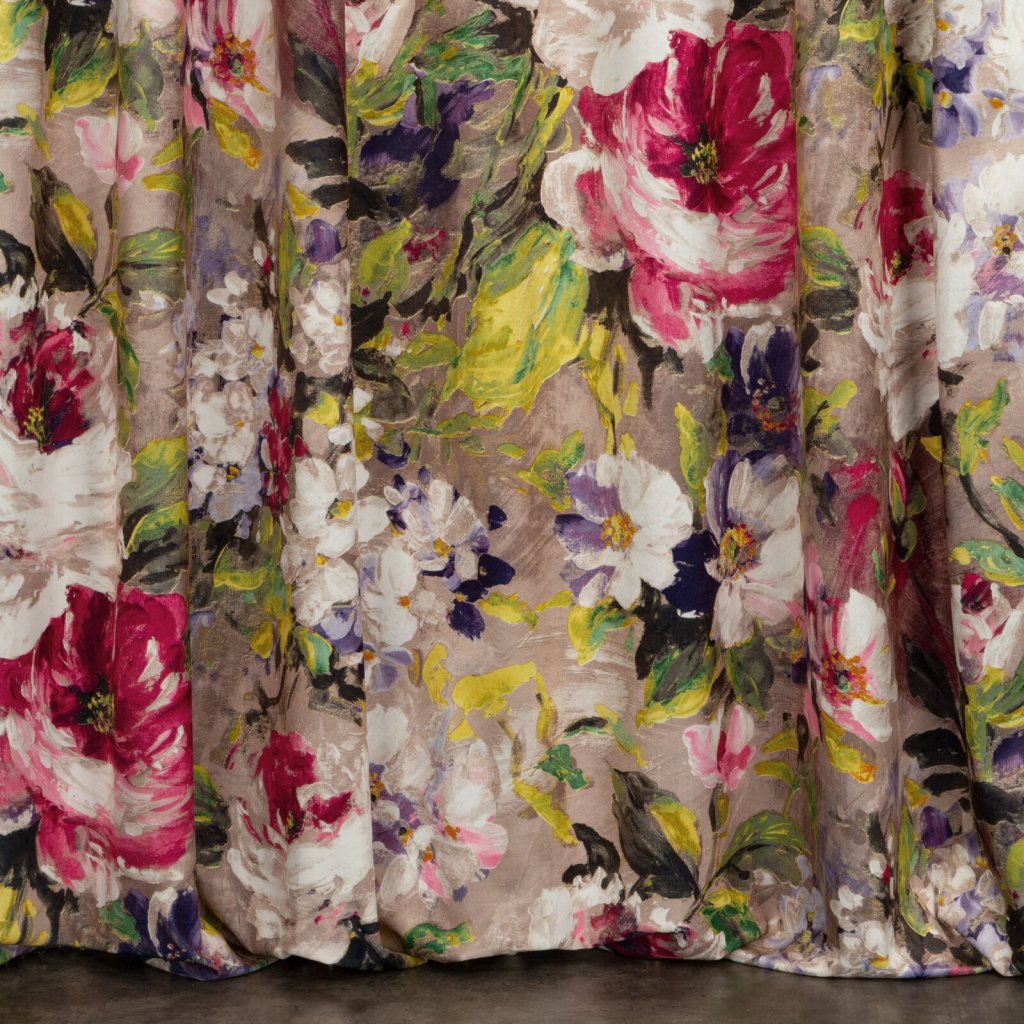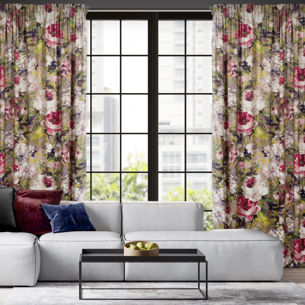 Sametový, zatemňující závěs s bohatým květinovým potiskem. Šířka: 140 cm, Délka: 270 cm, Barva: vícebarevná, Hmotnost: 200 GSM, Složení: 100 % polyesterDoplňkové parametry