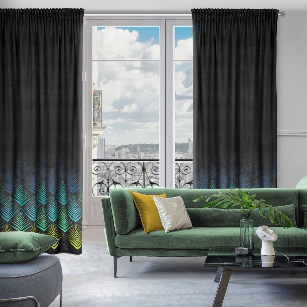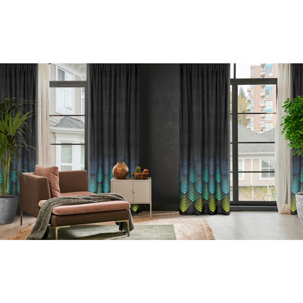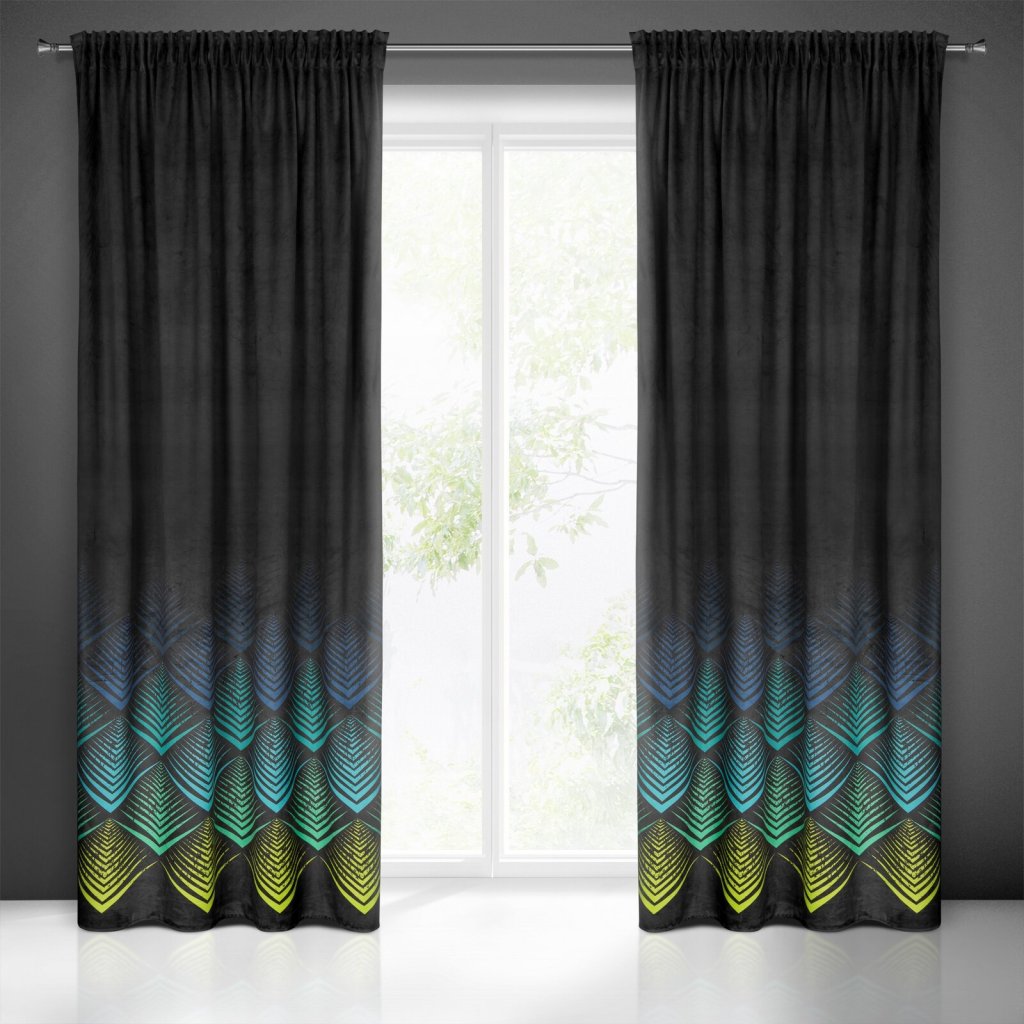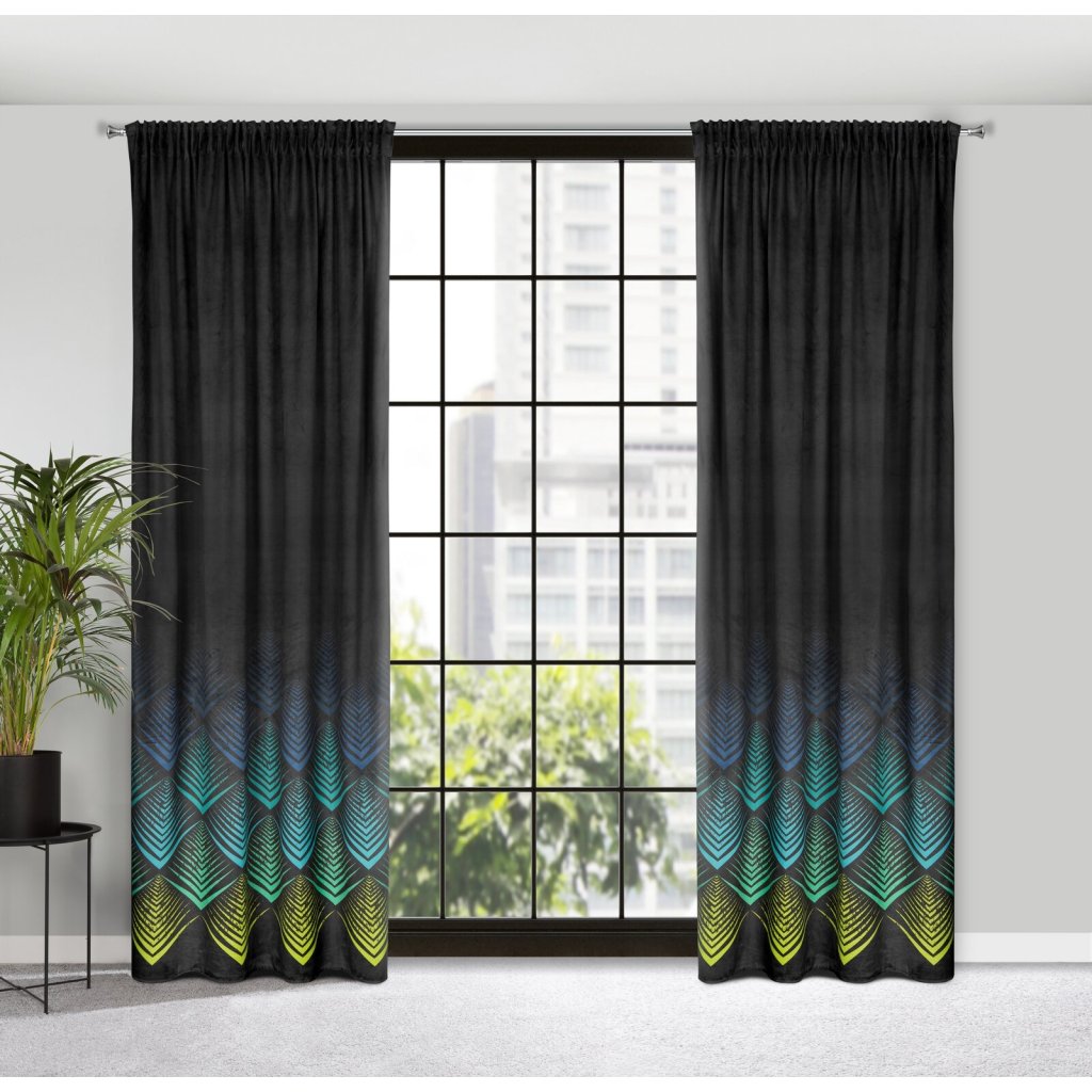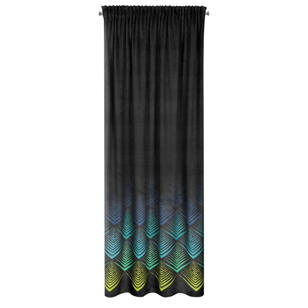 Sametový závěs s potiskem na spodní části, šířka: 140 cm, délka: 270 cm, barva: černá, hmotnost: 200 GSM, složení: 100% polyester.Doplňkové parametry