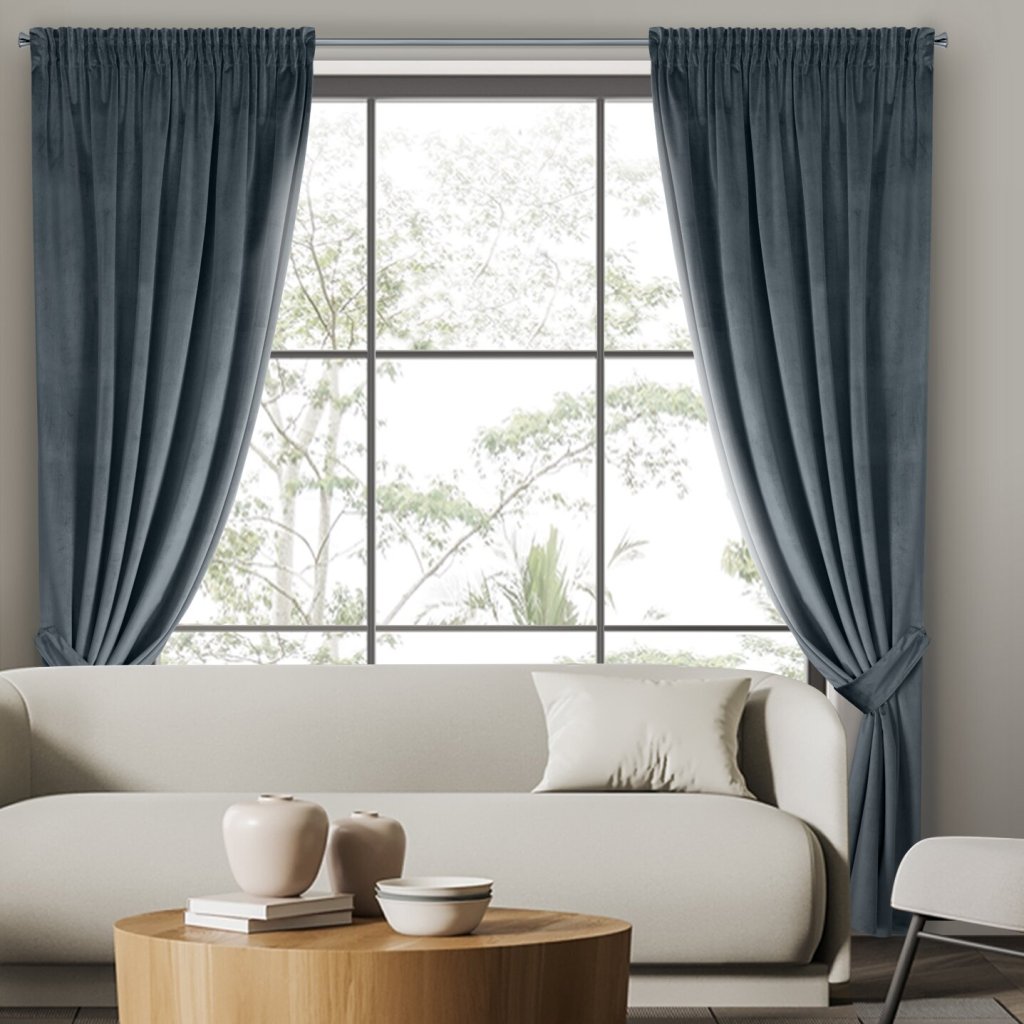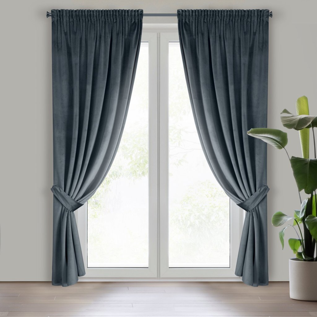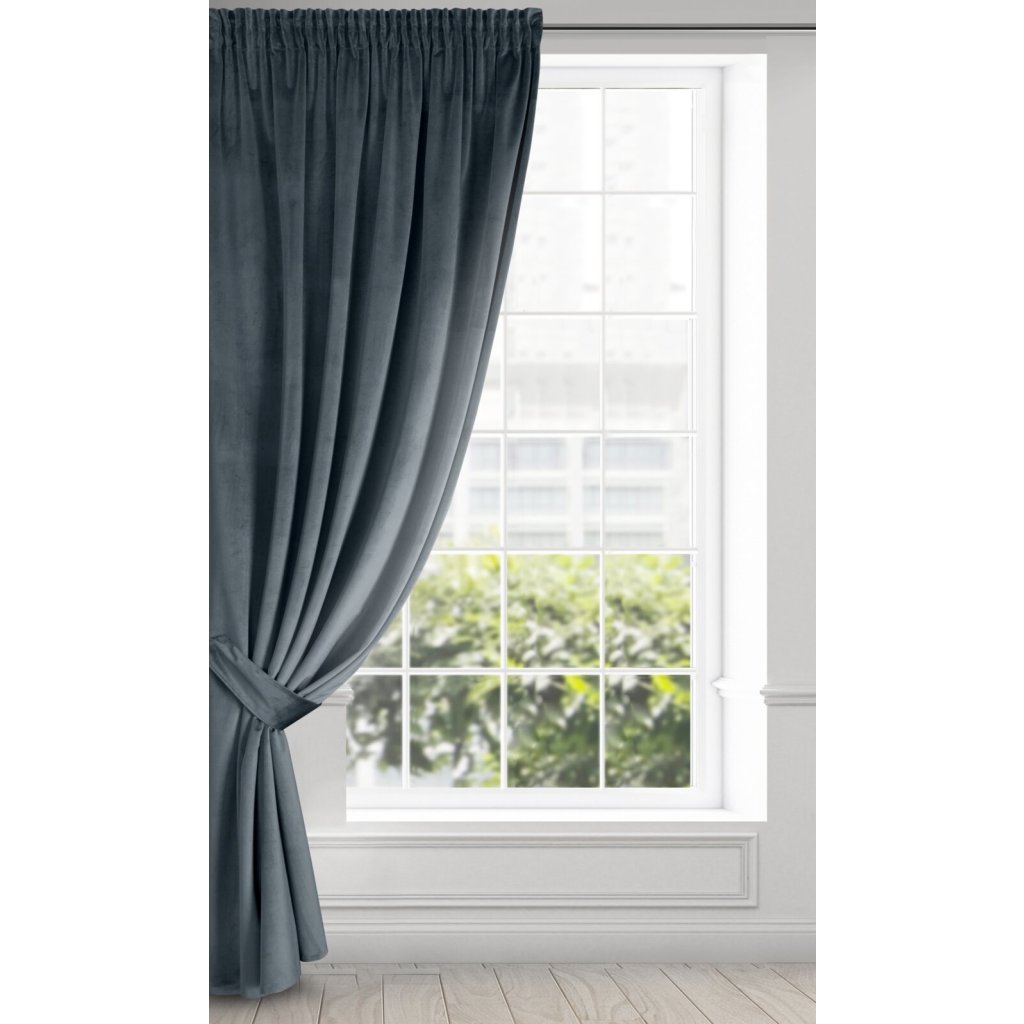 Jednobarevný sametový závěs se šňůrkou, šířka: 140 cm, délka: 300 cm, barva: grafitová, hmotnost: 200 GSM, složení: 100% polyester.Doplňkové parametry