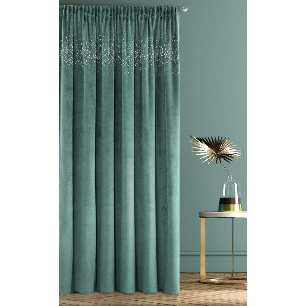 Sametový závěs se stříbrnými zirkony šířka: 140 cm, délka: 270 cm, barva: zelená, hmotnost: 215 GSM, složení: 100 % polyesterDoplňkové parametry