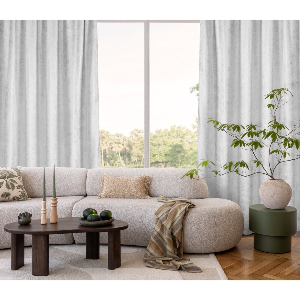 Elegantní sametový závěs AVENA v bílé barvě s jemným lesklým vzorem dodá interiéru moderní nádech. Lesklý potisk ve stříbrné barvě krásně odráží světlo, čímž vytváří sofistikovaný efekt a oživuje prostor. Šířka: 135 cm, délka: 270 cm, barva: bílá a stříbrná, hmotnost: 200 GSM, složení: 100% polyester.Doplňkové parametry