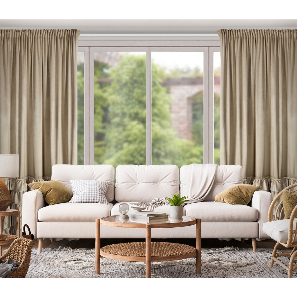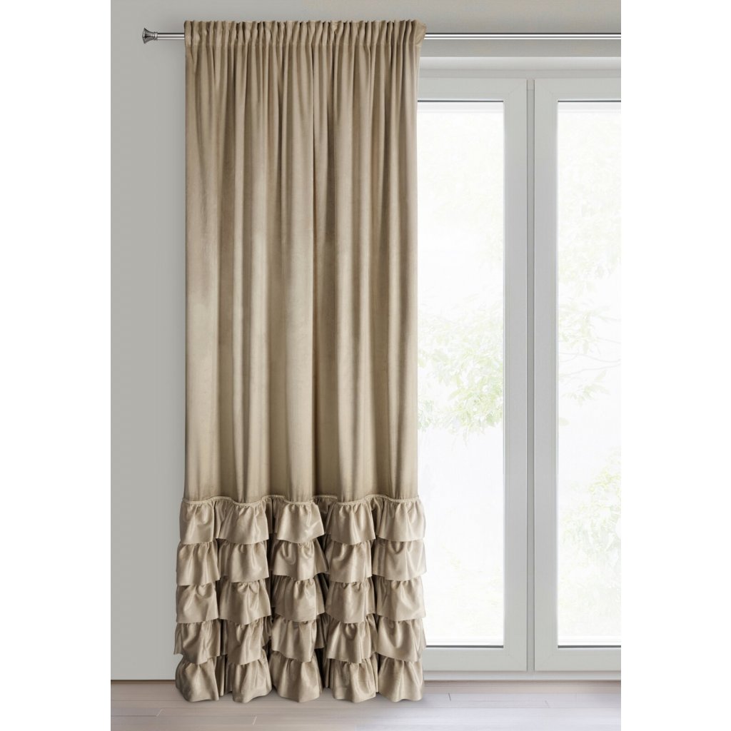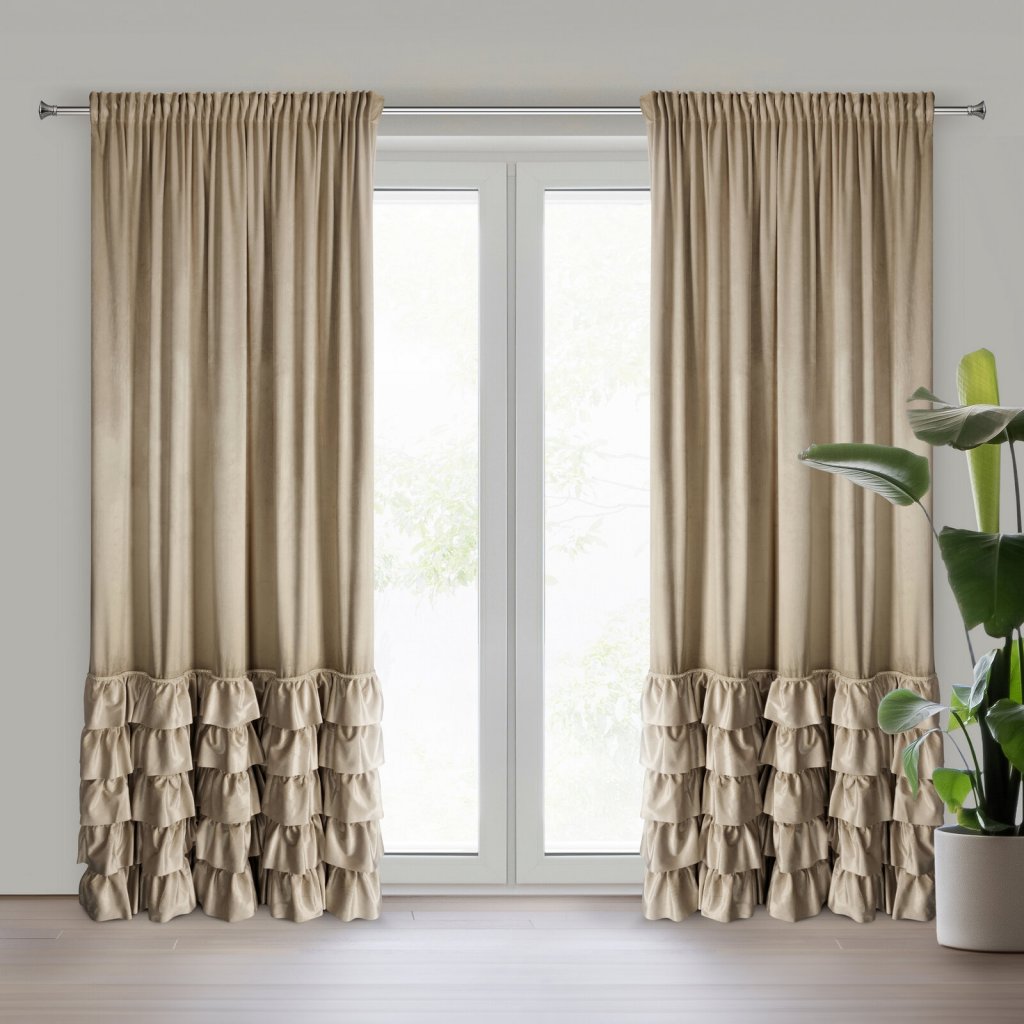 Hotový sametový závěs s volánky a ozdobnými kamínky, šířka: 140 cm, délka: 270 cm, barva: tmavobéžová, hmotnost: 200 GSM, složení: 100% polyester.Doplňkové parametry