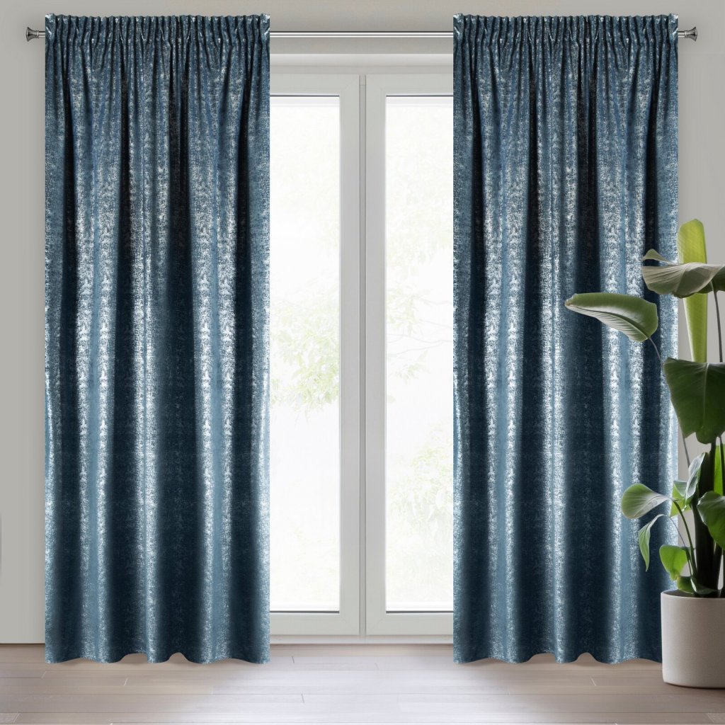 Sametový závěs se stříbrným potiskem, šířka: 140 cm, délka: 270 cm, barva: tmavě modrá, hmotnost: 200 GSM, složení: 100 % polyesterDoplňkové parametry