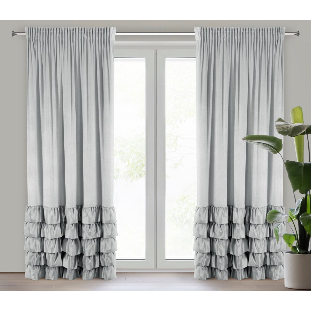 Hotový sametový závěs s volánky ve spodní části, šířka: 140 cm, délka: 250 cm, barva: stříbrná, hmotnost: 200 GSM, složení: 100% polyester.Doplňkové parametry