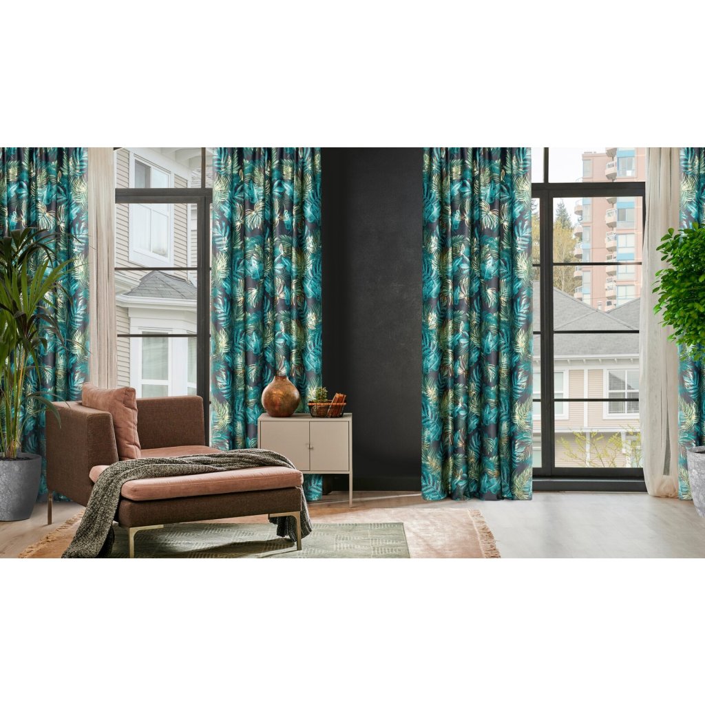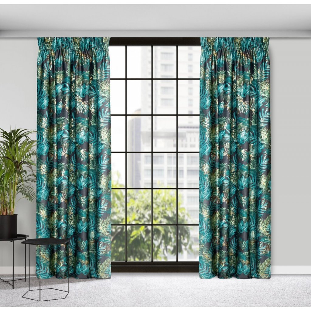 Sametový závěs se zlatým potiskem, šířka: 140 cm, délka: 270 cm, barva: vícebarevná, hmotnost: 200 GSM, složení: 100 % polyesterDoplňkové parametry