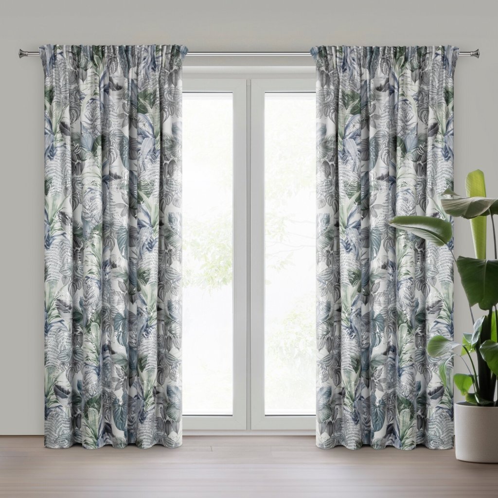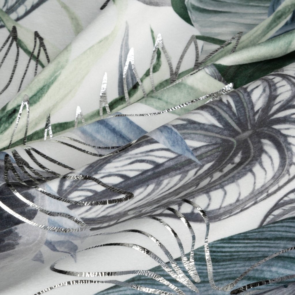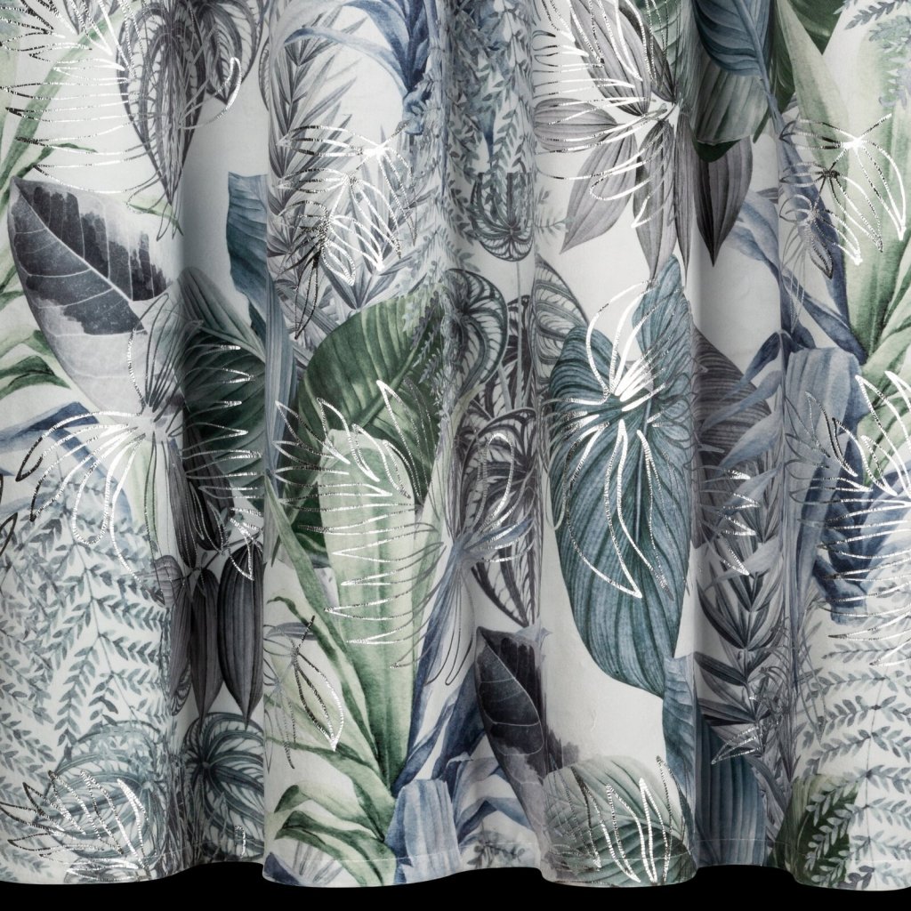 Na dotek jemný závěs DAVOS2 z příjemné sametové látky, zdobený módním motivem exotických listů v intenzivních barvách s lesklými prvky na bílém podkladu, je doplňkem, který se dokonale hodí do moderních interiérů. Kontrastní barvy aplikované na měkkou tkaninu vytvářejí mimořádnou kompozici věnovanou módním interiérům zařízeným v botanickém stylu. Hrubší tkanina izoluje sluneční světlo a zajišťuje příjemné klima v interiéru, látka poskytuje střední zatemnění. Potisk je jen na jedné straně, druhá strana závěsu je bílá. Šířka: 140 cm, délka: 270 cm, barva: vícebarevná, hmotnost: 200 GSM, šířka řasící pásky: 8 cm, výška lemu nad páskou: 3 cm, složení: 100% polyester.Doplňkové parametry
