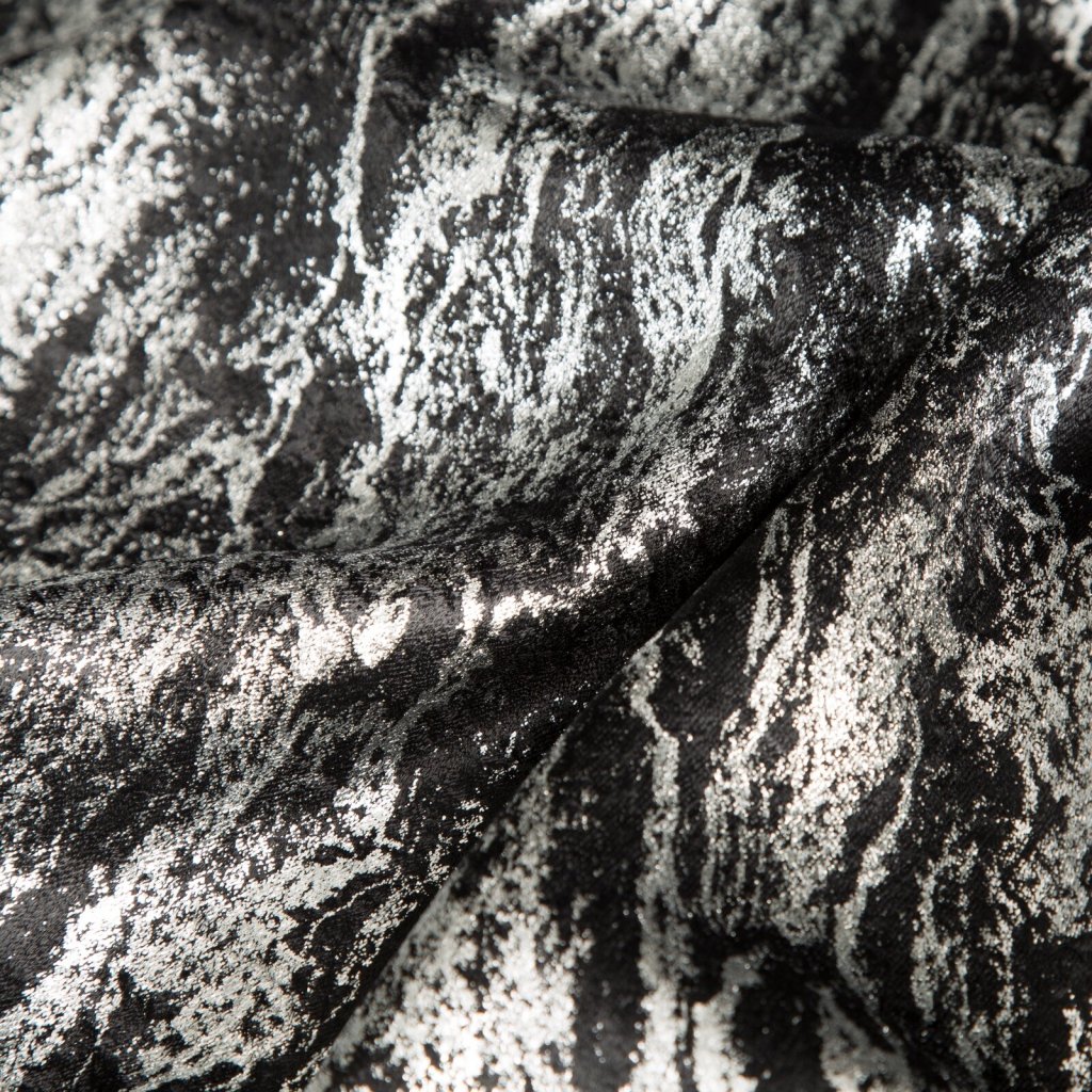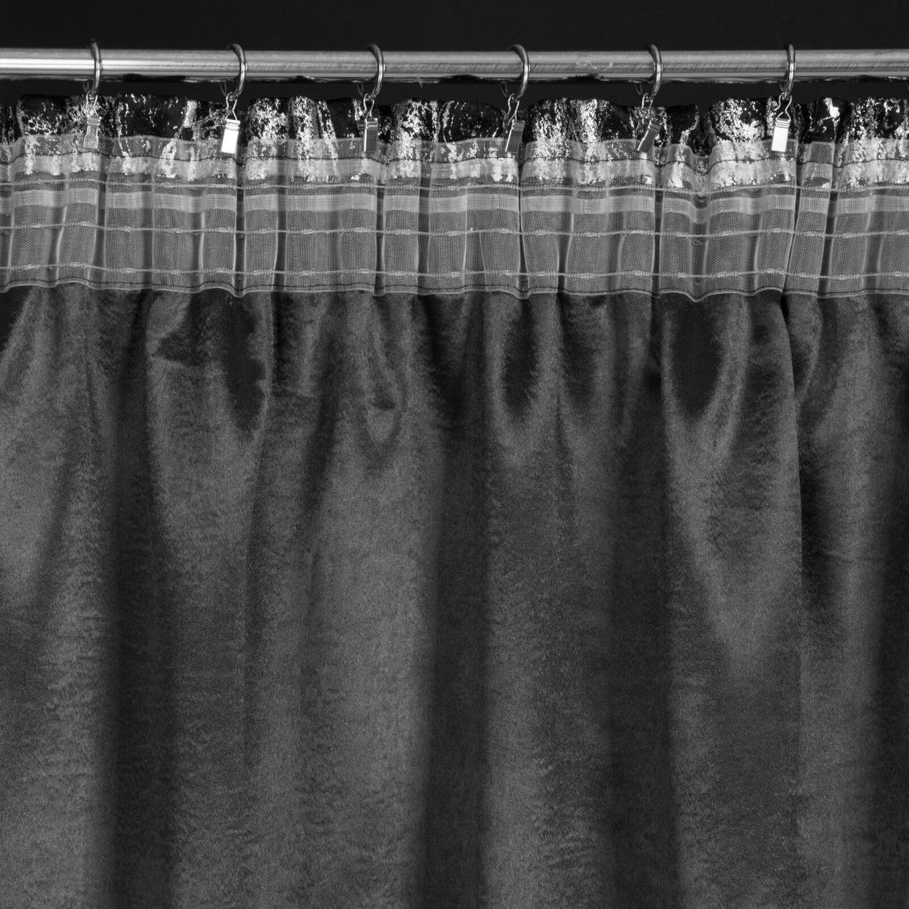 Hotový zatemňovací závěs s lesklým stříbrným potiskem, šířka: 140 cm, délka: 270 cm, barva: černá, hmotnost: 230 GSM, složení: 100% polyester.Doplňkové parametry