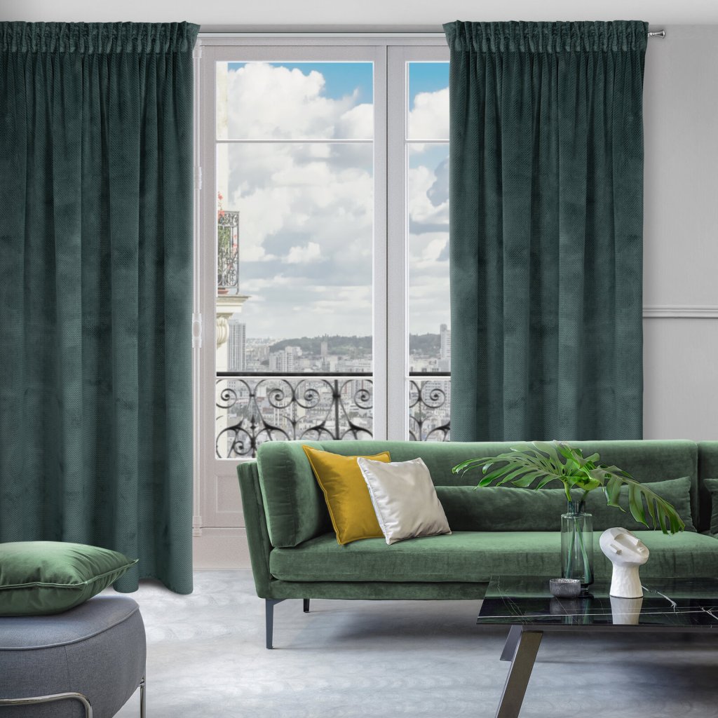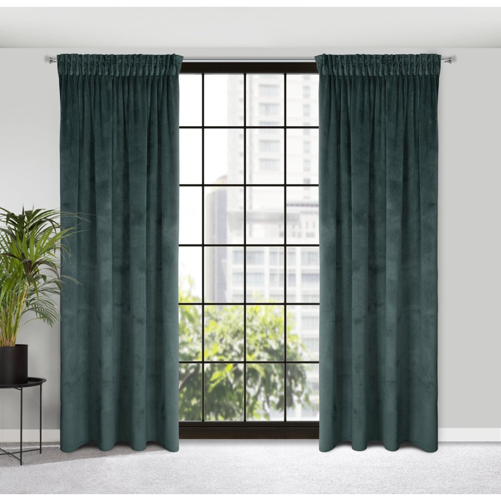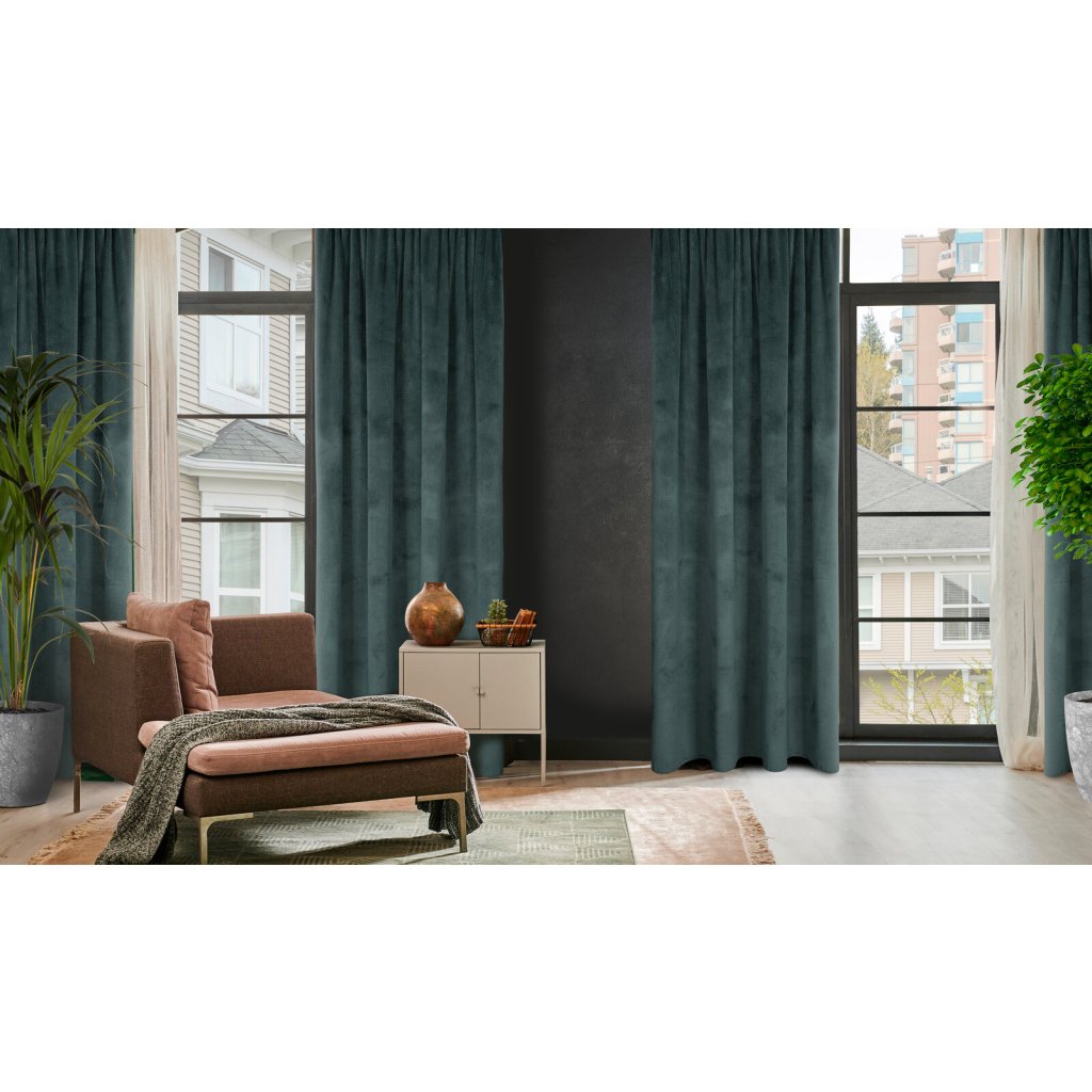 Lehký sametový závěs ELIZA z měkké tkaniny s jemným leskem. Závěs je z jemného a na dotek příjemného sametu s jemným, reliéfním vzorem. Hrubší látka pokrývá okno, chrání váš interiér před přebytečným světlem díky střednímu zatemnění. Šířka: 140 cm, délka: 300 cm, barva: tmavě matová, hmotnost: 210 GSM, složení: 100% polyester.Doplňkové parametry