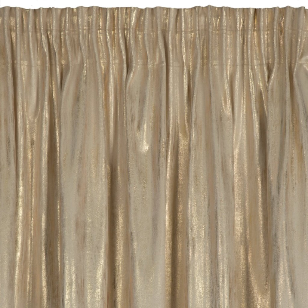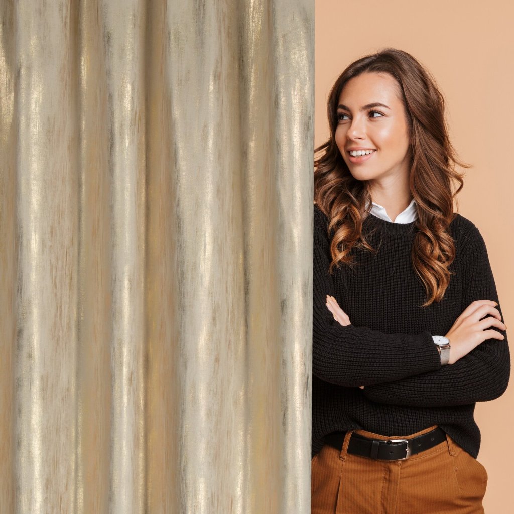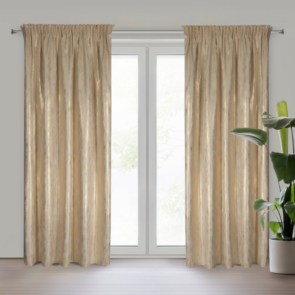 Závěs EMILA zaujme moderním vzorem po celém závěsu na jemné sametové látce, navíc zvýrazněný třpytivým, zlatavým potiskem. Šířka: 140 cm, délka: 270 cm, barva: krémová a zlatá, hmotnost: 200 GSM, složení: 100% polyester.Doplňkové parametry