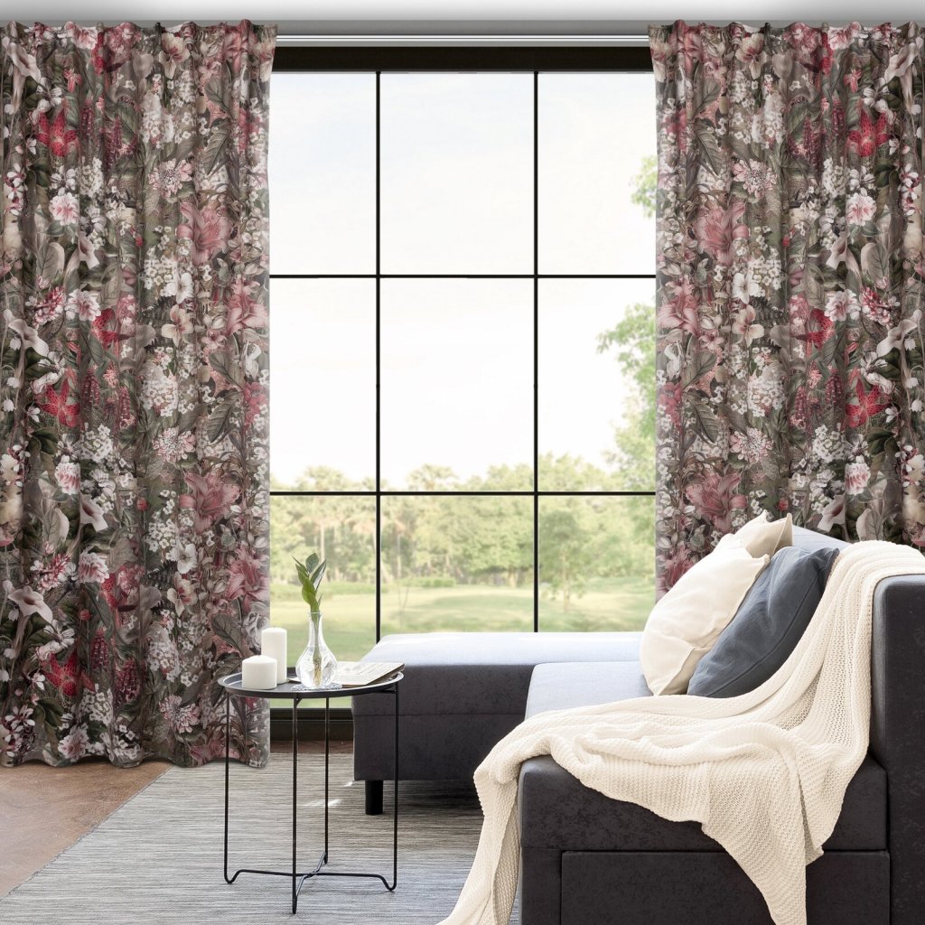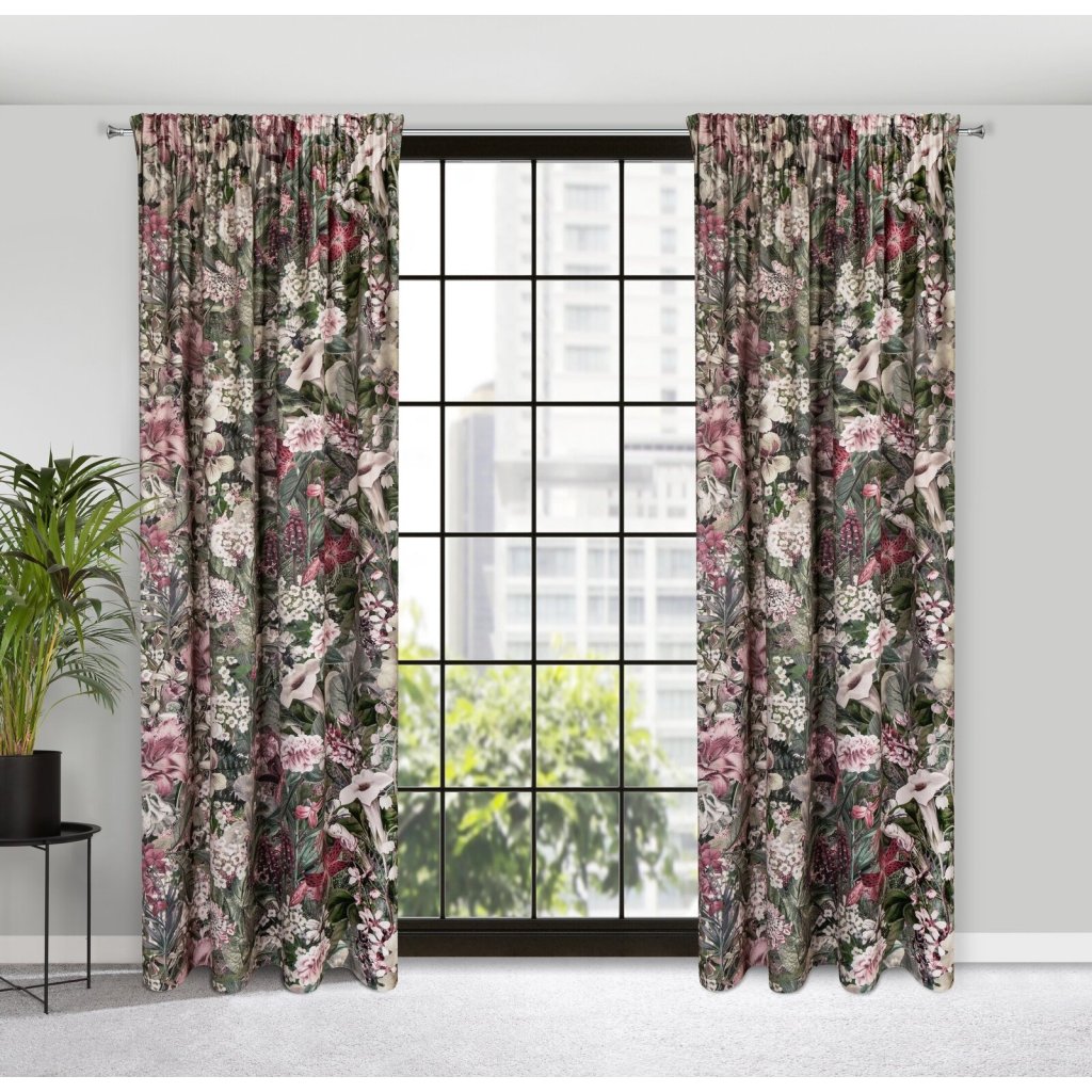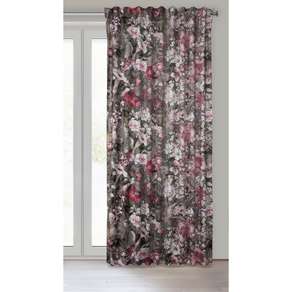 Sametový závěs na pásce s květinovým potiskem, šířka: 140 cm, délka: 270 cm, barva: vícebarevná, hmotnost: 200 GSM, složení: 100% polyester.Doplňkové parametry