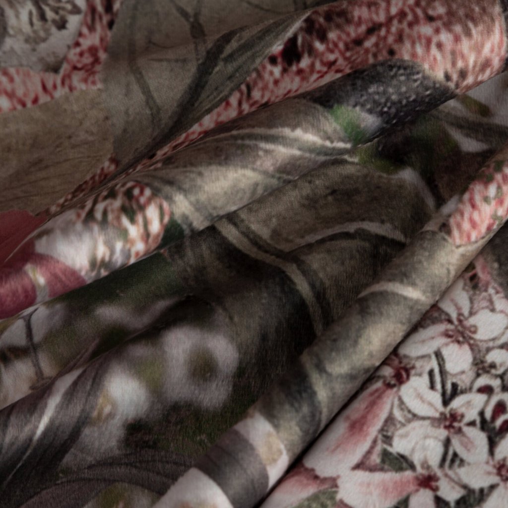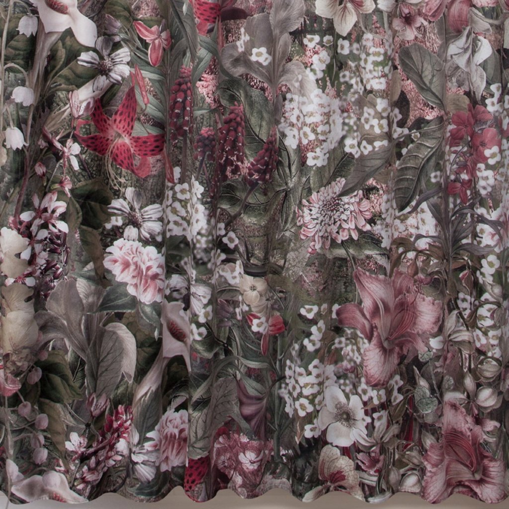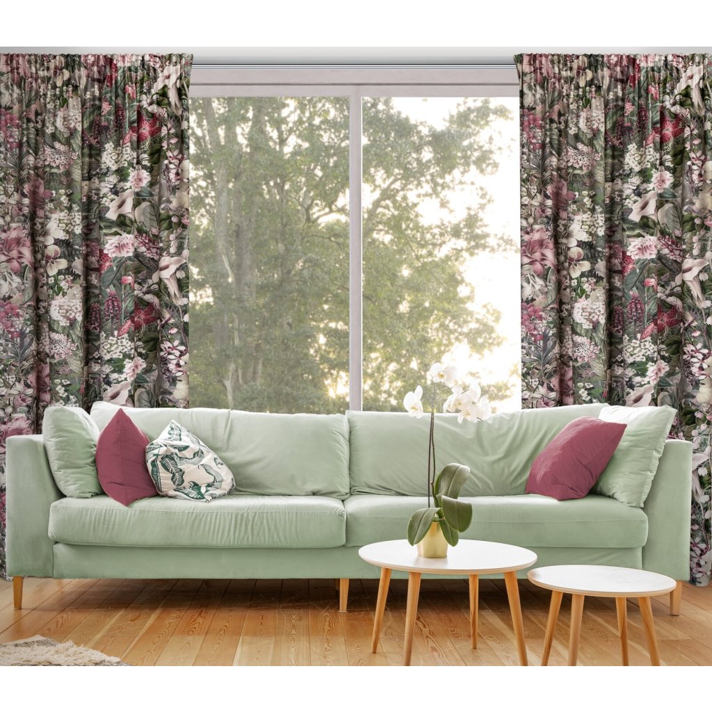 Sametový závěs na pásce s květinovým potiskem, šířka: 140 cm, délka: 270 cm, barva: vícebarevná, hmotnost: 200 GSM, složení: 100% polyester.Doplňkové parametry